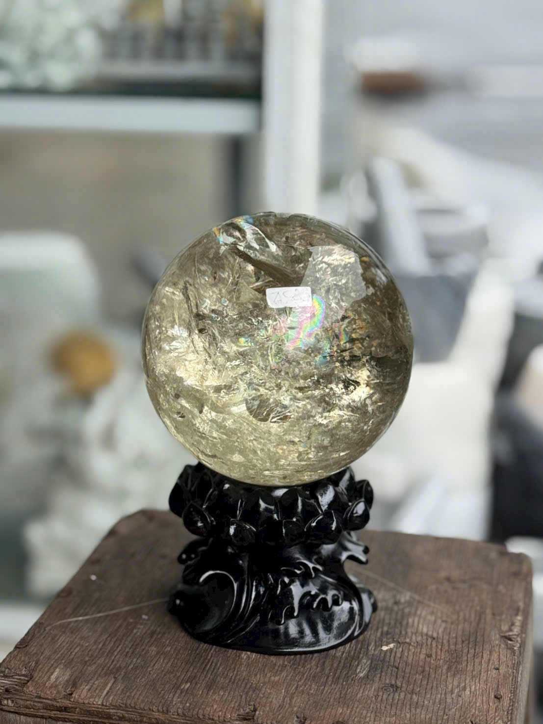 • Bi cầu thạch anh vàng tinh thể 5A VIP may mắn tài lộc T3140