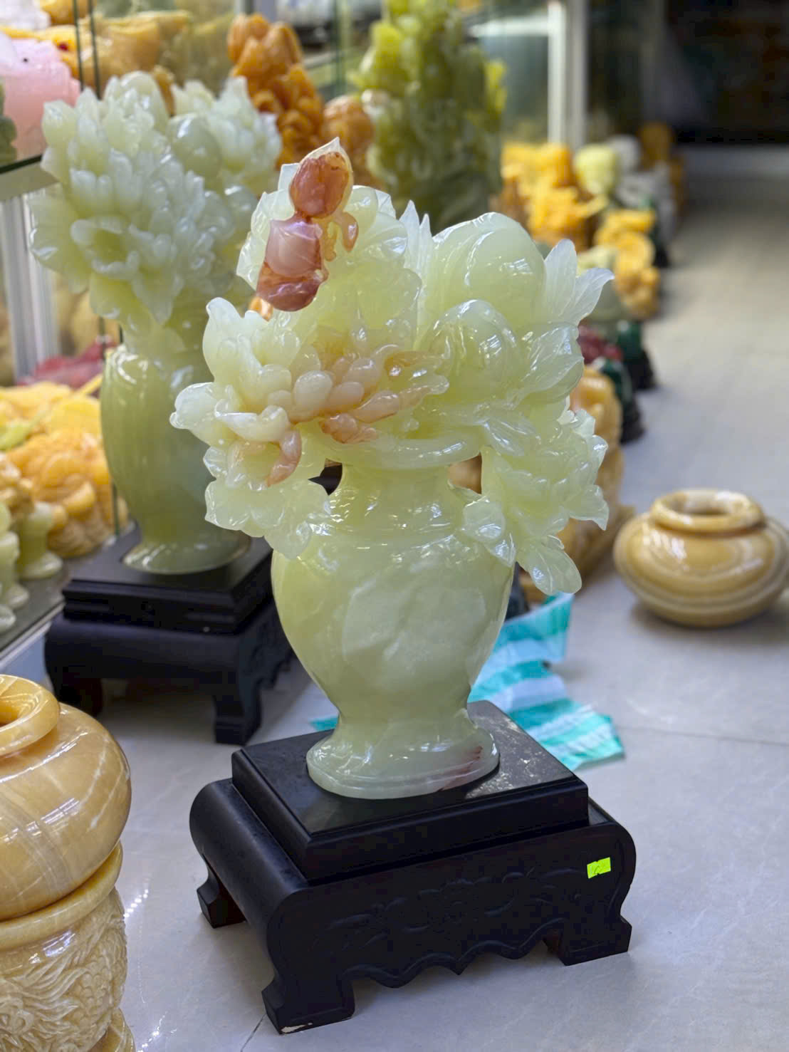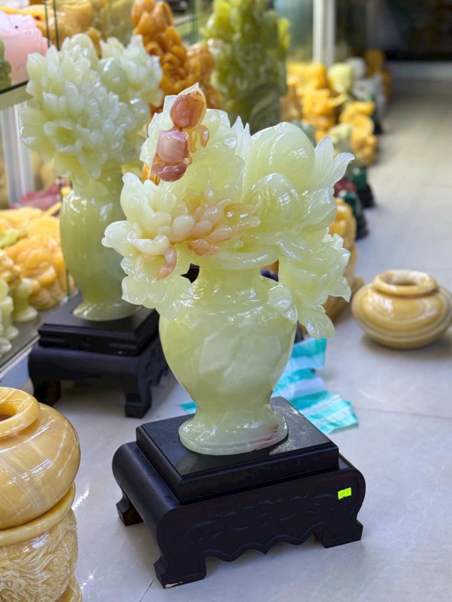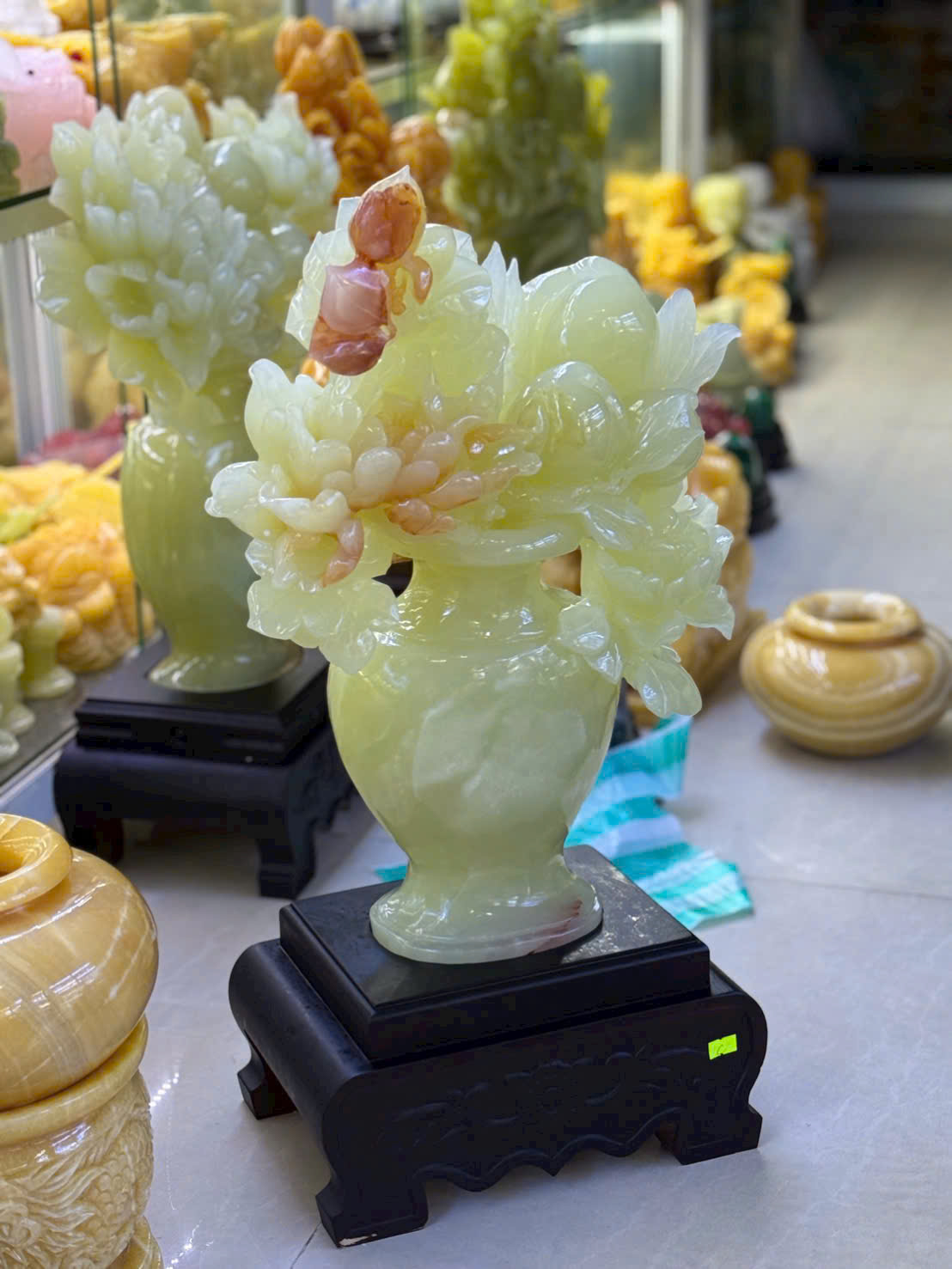 Bình hoa mẫu đơn đá ngọc onyx xanh lên huyết cao 55cm - ngang 30cm T3547