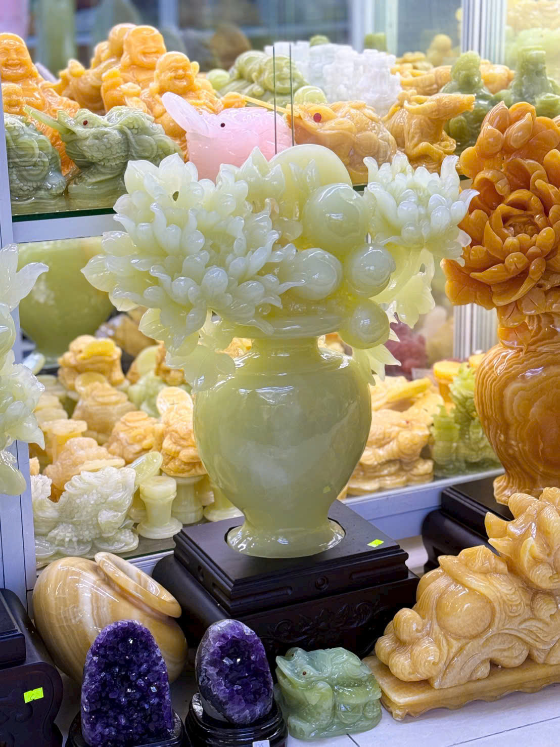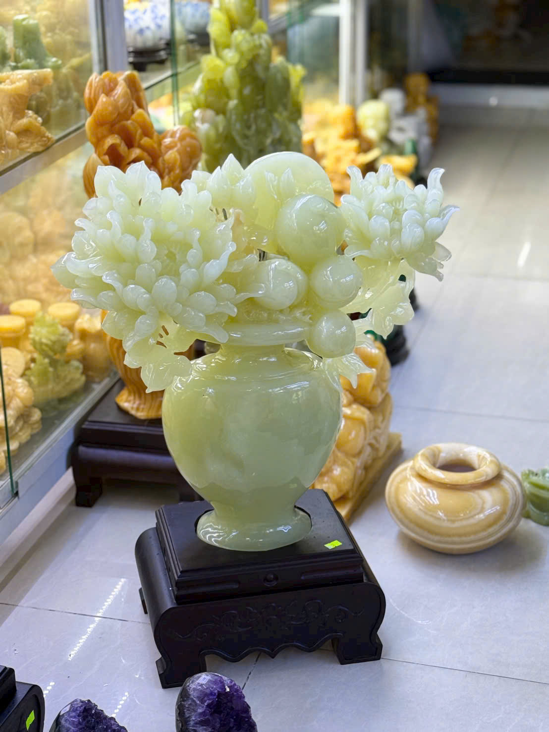 • Bình hoa mẫu đơn đá ngọc onyx xanh cao 65cm - ngang 50cm T3549