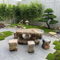 Bộ bàn ghế đá cà rốt tự nhiên gồm 6 đôn kích thước 1.5m x 95cm x 65cm