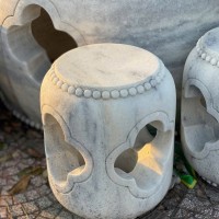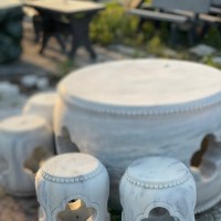 • Bộ bàn ghế đá trắng nguyên khối - Bàn đường kính 1m cao 70cm -đk ghế 30cm -cao ghế 45cm T3571