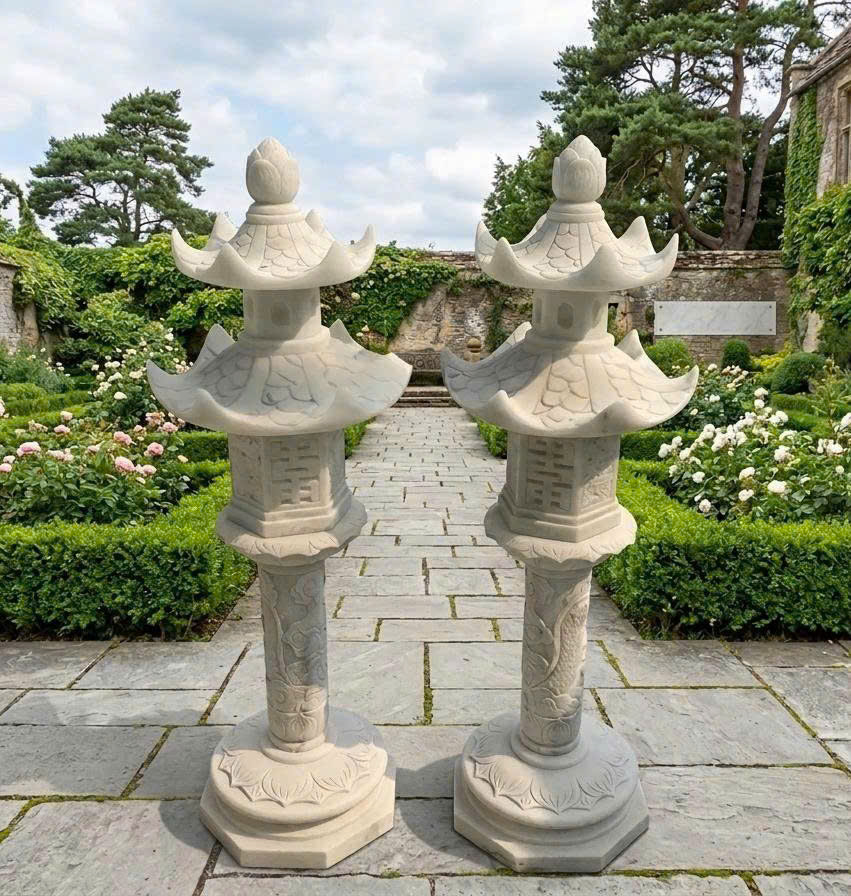 Cặp chân đèn sân vườn đá trắng nguyên khối cao 1m71 T3878