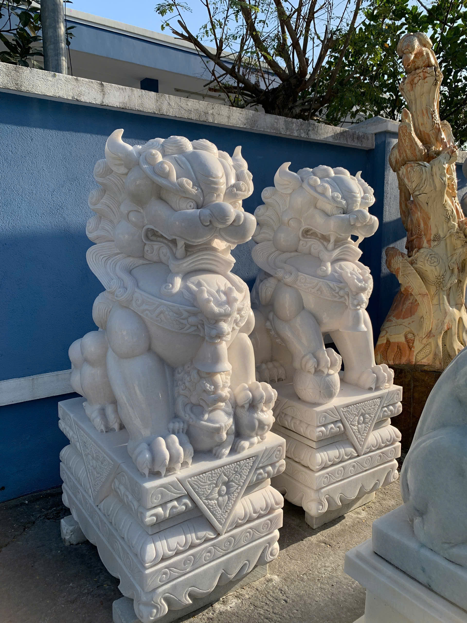 Cặp kì lân đá trắng là linh vật phong thủy cao quý, biểu tượng cho may mắn, tài lộc, và sự bình an, thường được đặt trước cửa nhà hoặc công ty để trấn trạch, xua đuổi tà ma và hóa giải sát khí. Đá trắng mang lại năng lượng dương, tạo vẻ sang trọng và tăng cường sức khỏe, sự hòa hợp cho gia chủ.