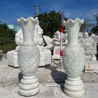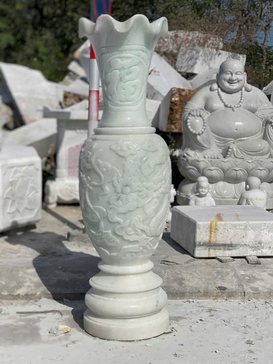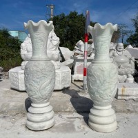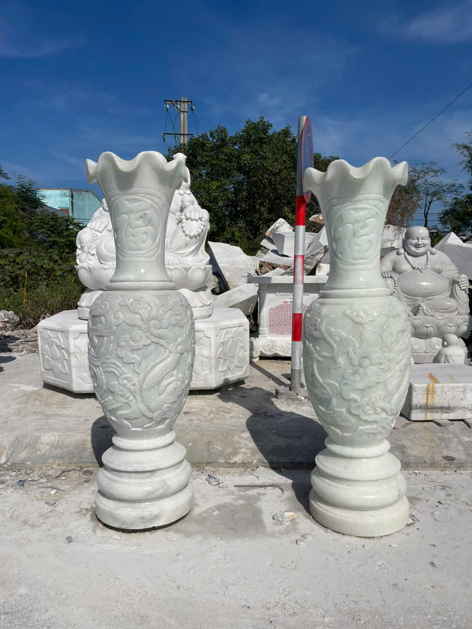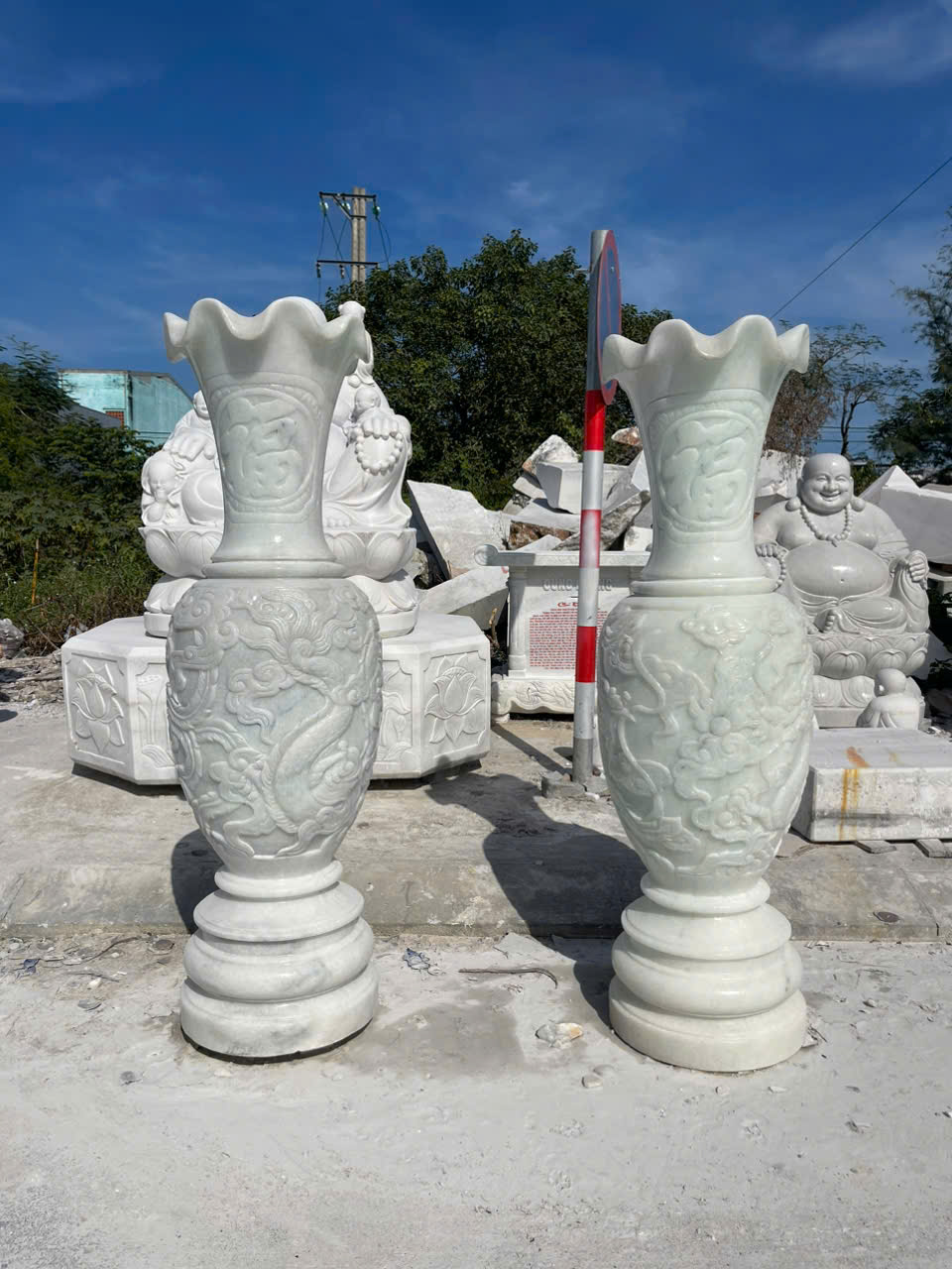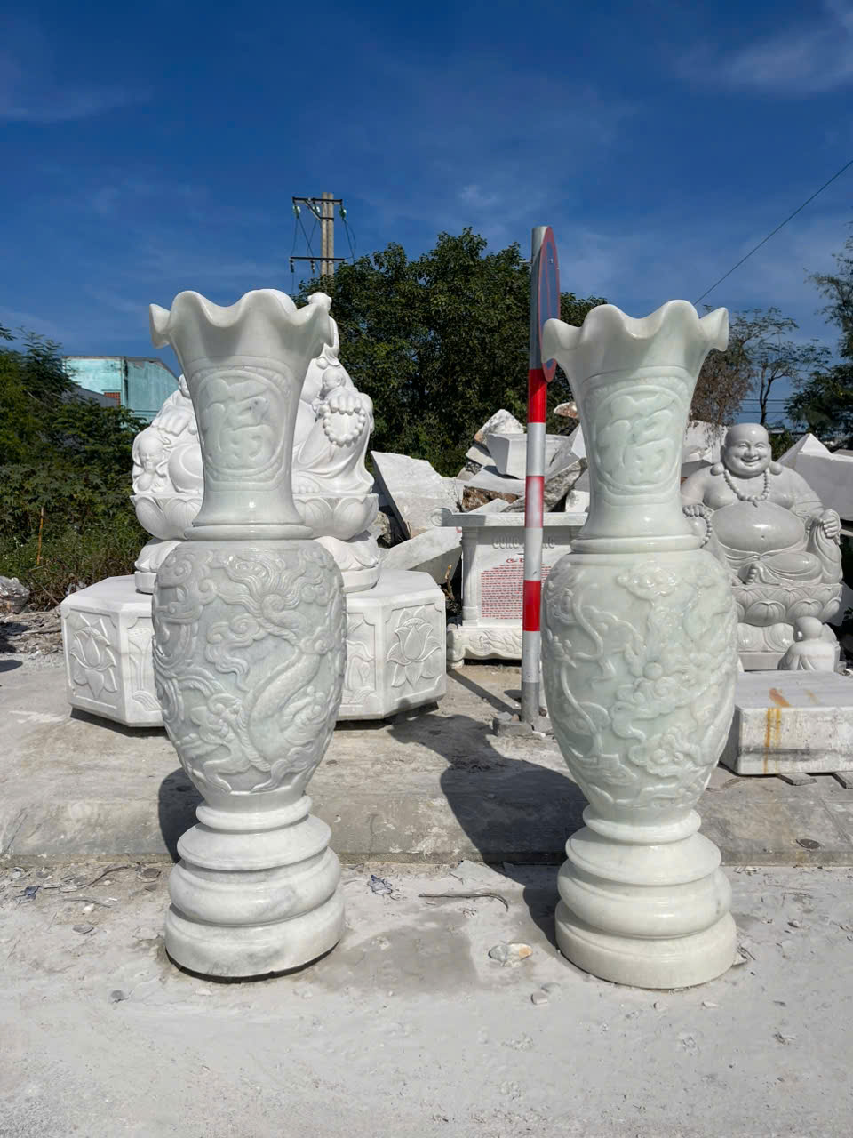 • Cặp lục bình đá trắng nguyên khối Cao 1.8M -bụng 60Cm T3593