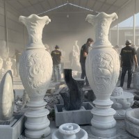 Cặp lục bình (lộc bình) đá trắng tượng trưng cho sự thuần khiết, sang trọng, có ý nghĩa chiêu tài lộc, tích tụ vượng khí và bảo quản của cải cho gia chủ nhờ thiết kế thân phình, cổ thắt