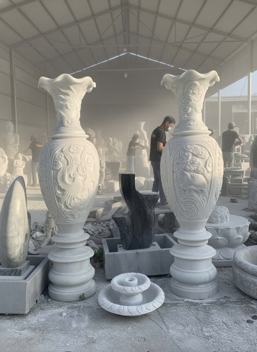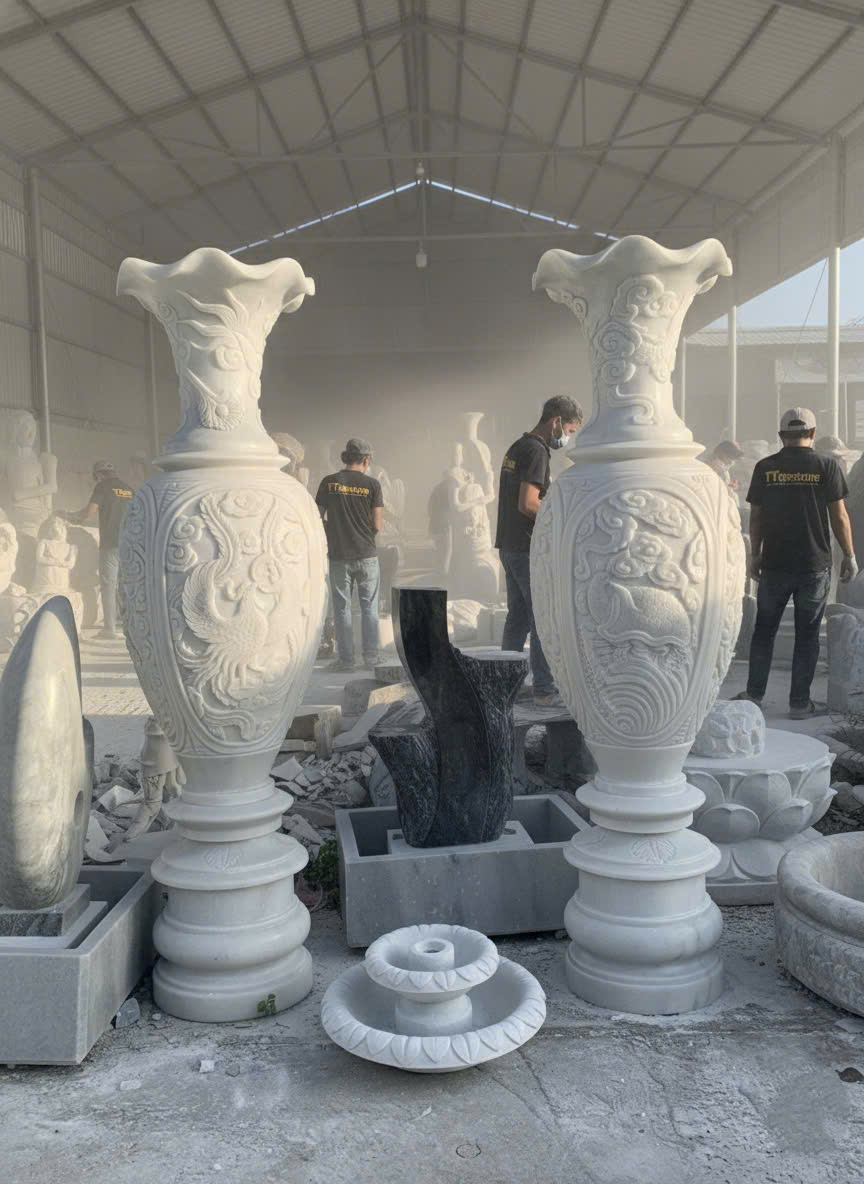 -Chất liệu: Đá trắng nguyên khối tự nhiên
