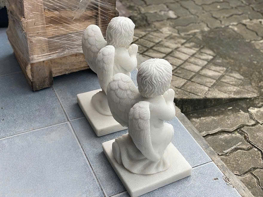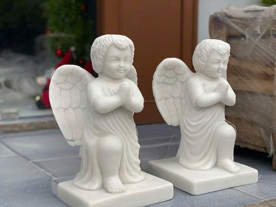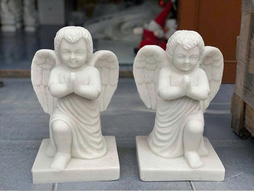 Cặp tượng thiên thần quỳ gối đá trắng là biểu tượng sự kính trọng, sự phục tùng và đại diện cho sự thuần khiết, vô tội, ánh sáng, niềm hy vọng.