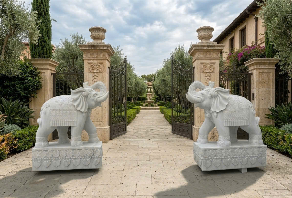 + Biểu tượng của sức mạnh và quyền uy: Với kích thước cao 1.8m, cặp voi mang lại sự bề thế, khẳng định vị thế và sức mạnh cho công trình kiến trúc.