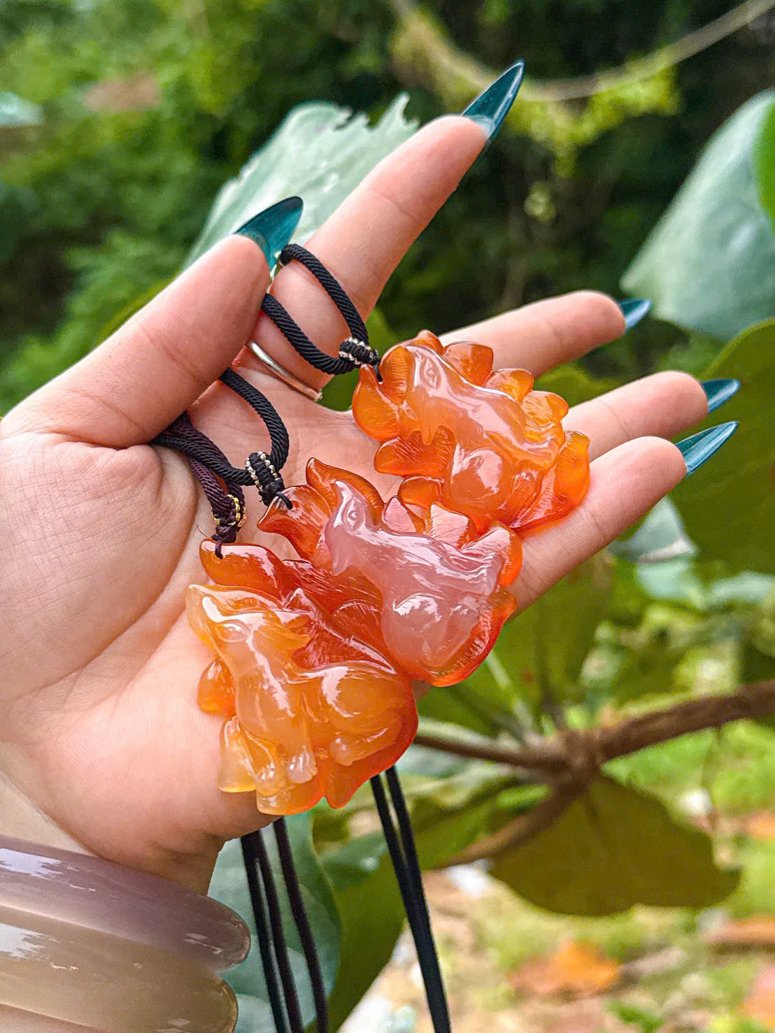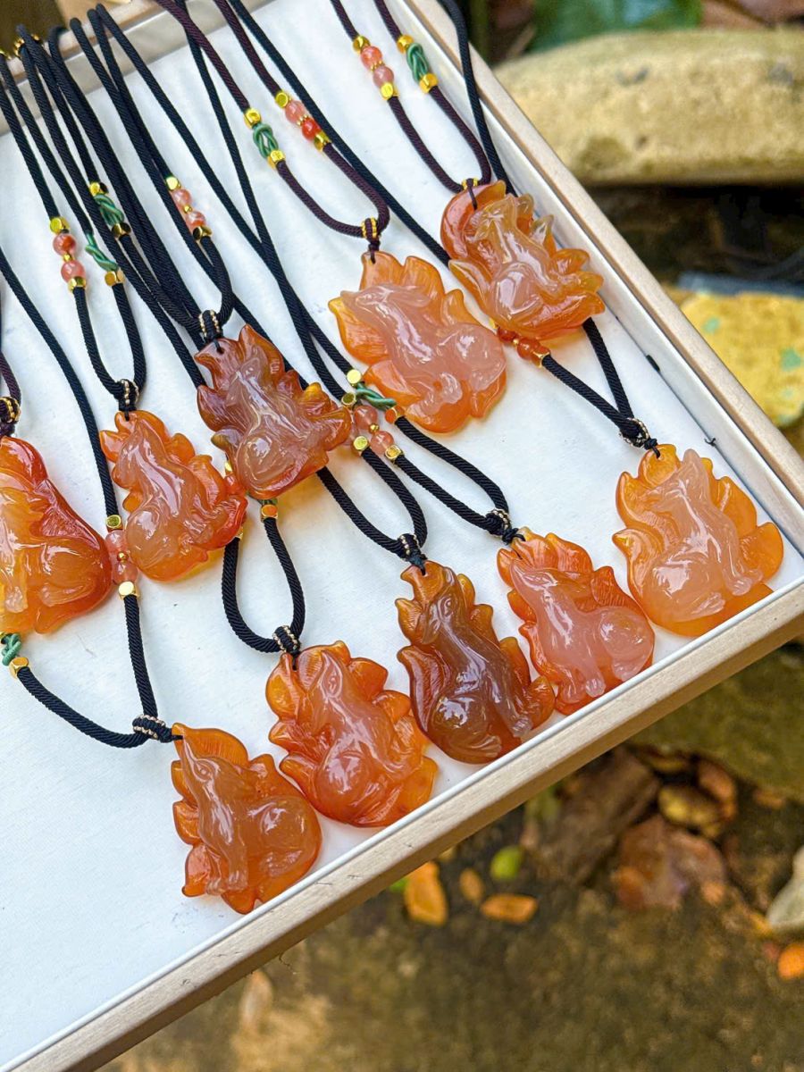 Mặt dây chuyền hồ ly đá mã não mang ý nghĩa về tình duyên viên mãn, tài lộc may mắn, sự khôn ngoan, tự tin và bảo vệ khỏi tà khí. Sự kết hợp này vừa tận dụng ý nghĩa của hồ ly trong văn hóa dân gian (sắc đẹp, trí tuệ, tình duyên) vừa phát huy năng lượng của đá mã não (bảo vệ, trừ tà, cân bằng năng lượng)