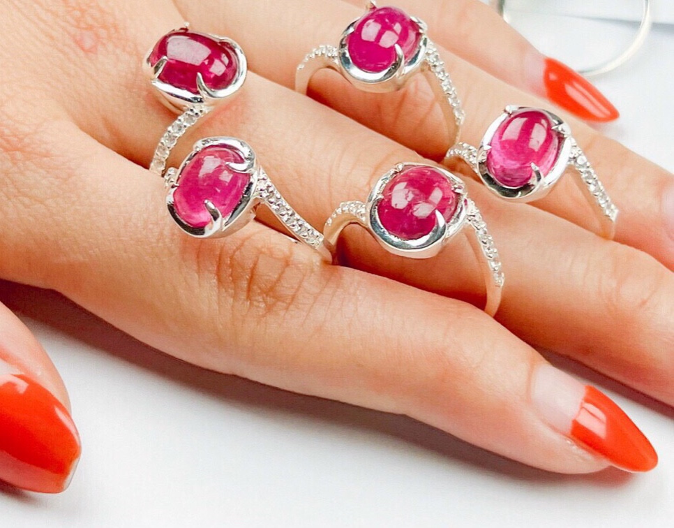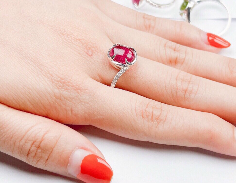 Nhẫn đá tourmaline hồng bọc khung bạc ta : Đá Tourmaline là một loại đá vô cùng ‘huyền diệu’, chúng tạo ra năng lượng giúp bạn luôn suy nghĩ tích cực trong hoàn cảnh khó khăn, mang lại sự may mắn, hạnh phúc
