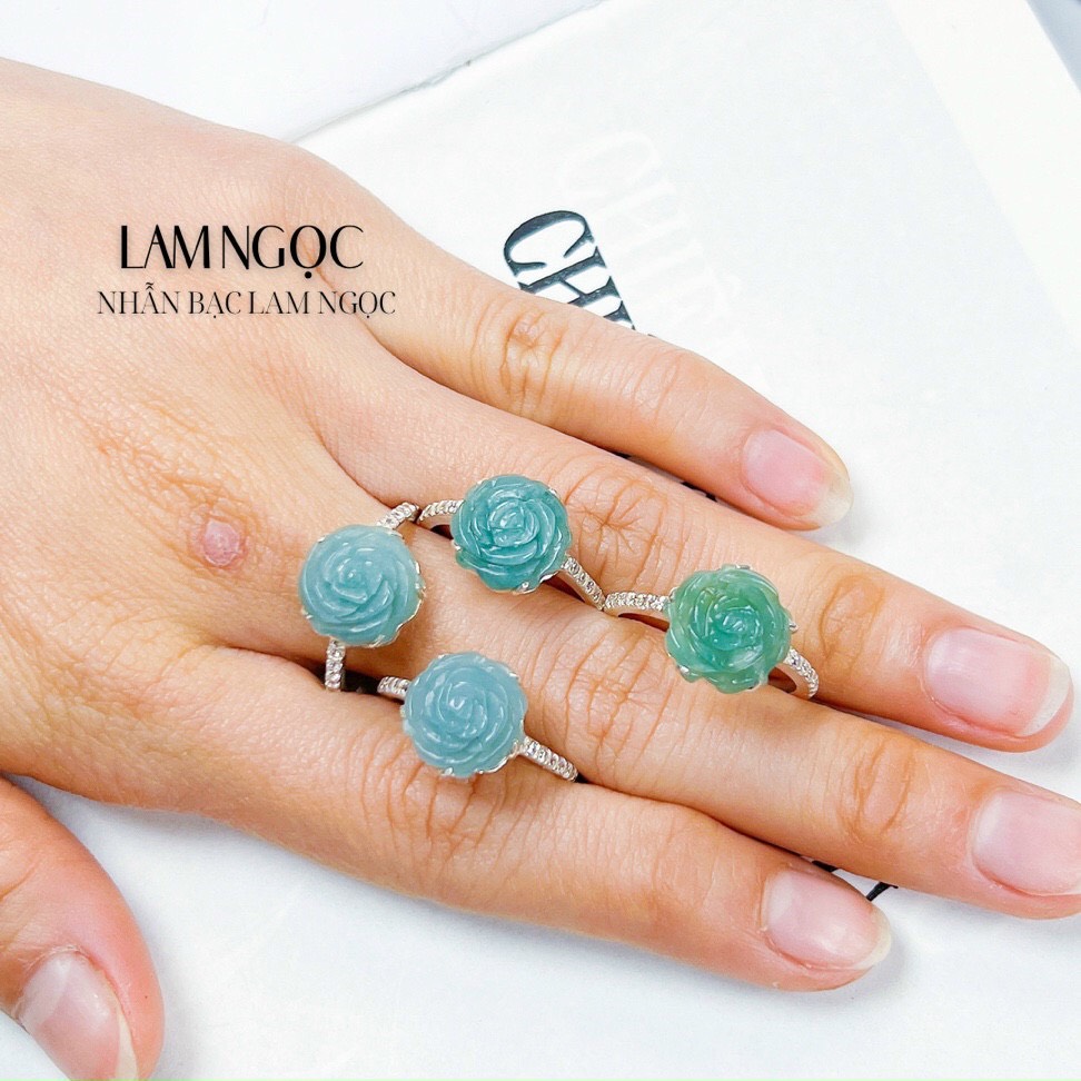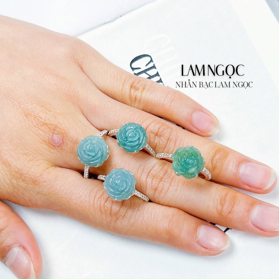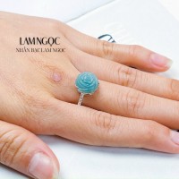 Nhẫn lam ngọc hoa sen bọc bạc sang trọng , may mắn tài lộc
