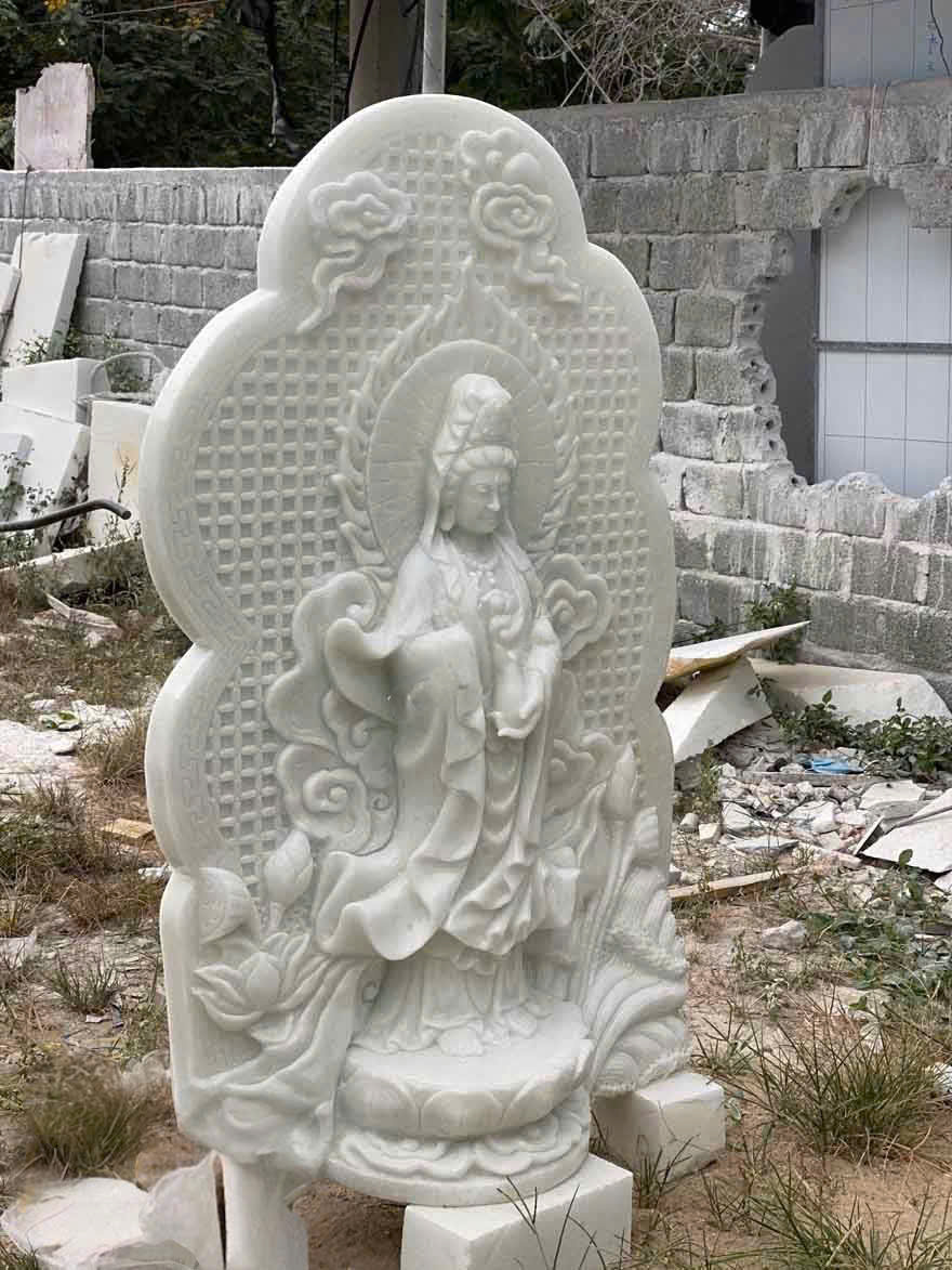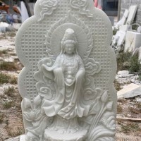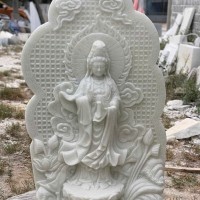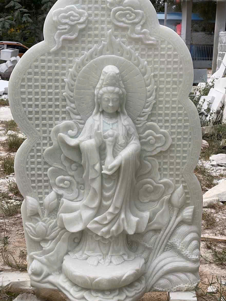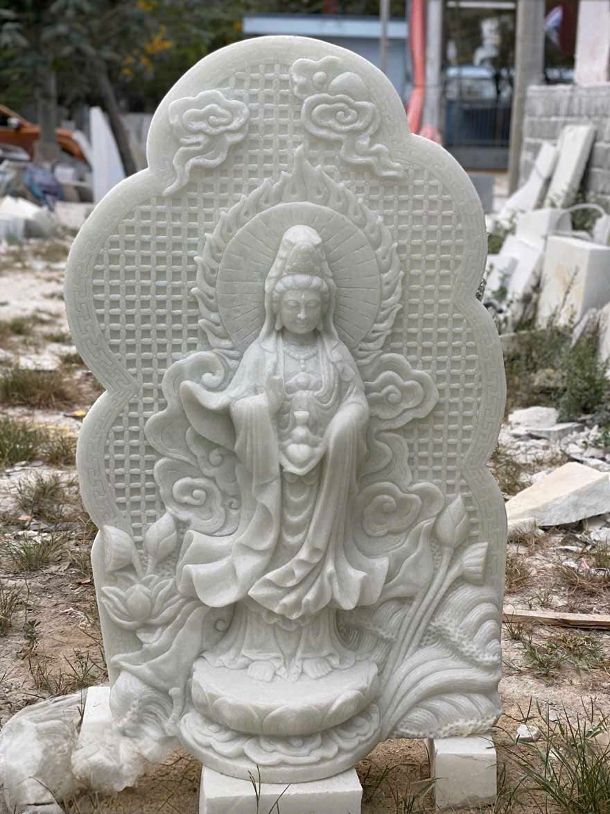 Phật Bà Quan Thế Âm Bồ Tát được chạm khắc trên đá trắng tự nhiên cao 1m5 T3670