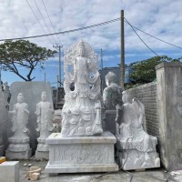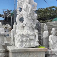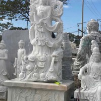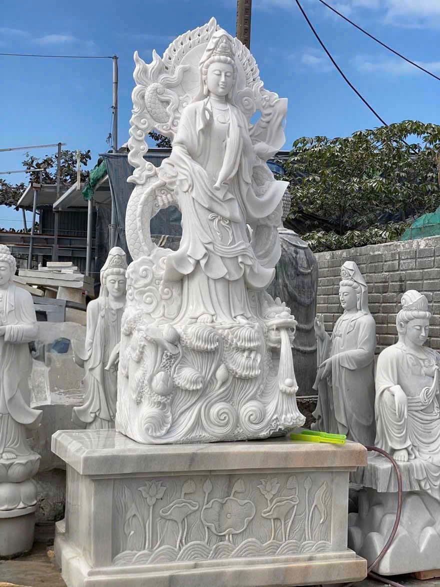 Phật quan âm đứng trên đài rồng và mây cao đá trắng nguyên khối 2m5 T3668