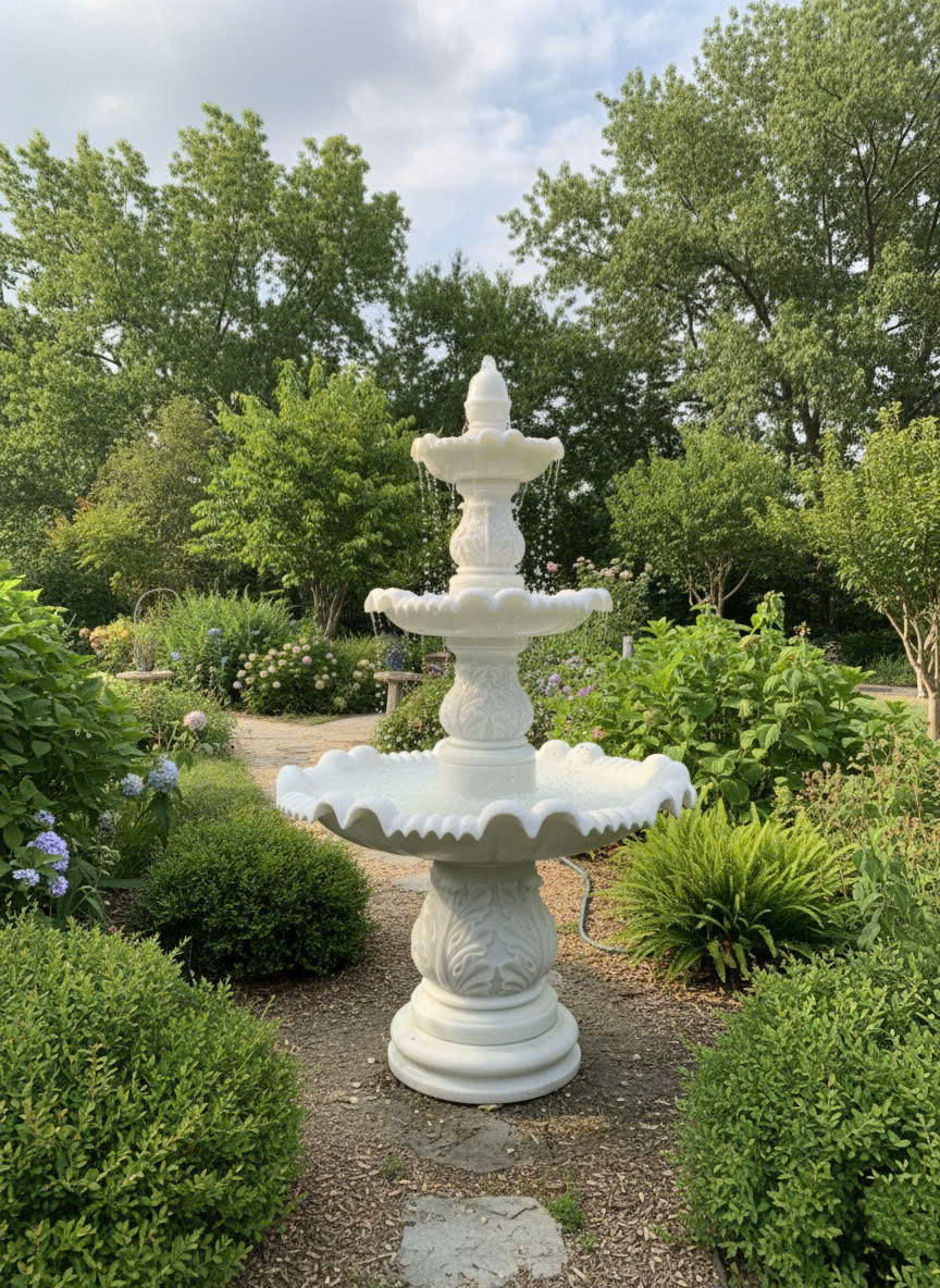 Cân bằng năng lượng và hóa giải sát khí: Đá trắng (thường là cẩm thạch trắng) kết hợp với nước chảy liên tục giúp tiêu trừ năng lượng xấu, cân bằng âm dương và xua đuổi tà khí.