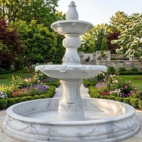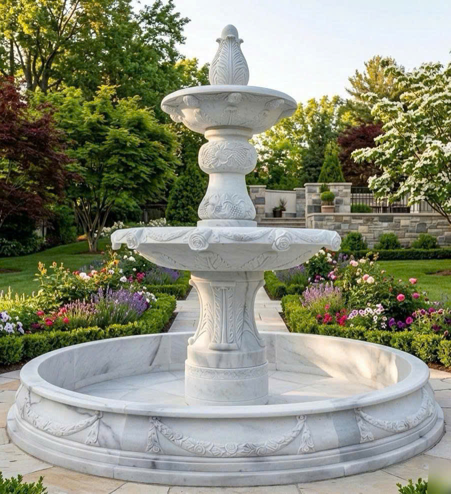 Đài phun nước đá trắng tự nhiên cao 2.5m là điểm nhấn kiến trúc lộng lẫy, mang đậm nét cổ điển và quyền quý.