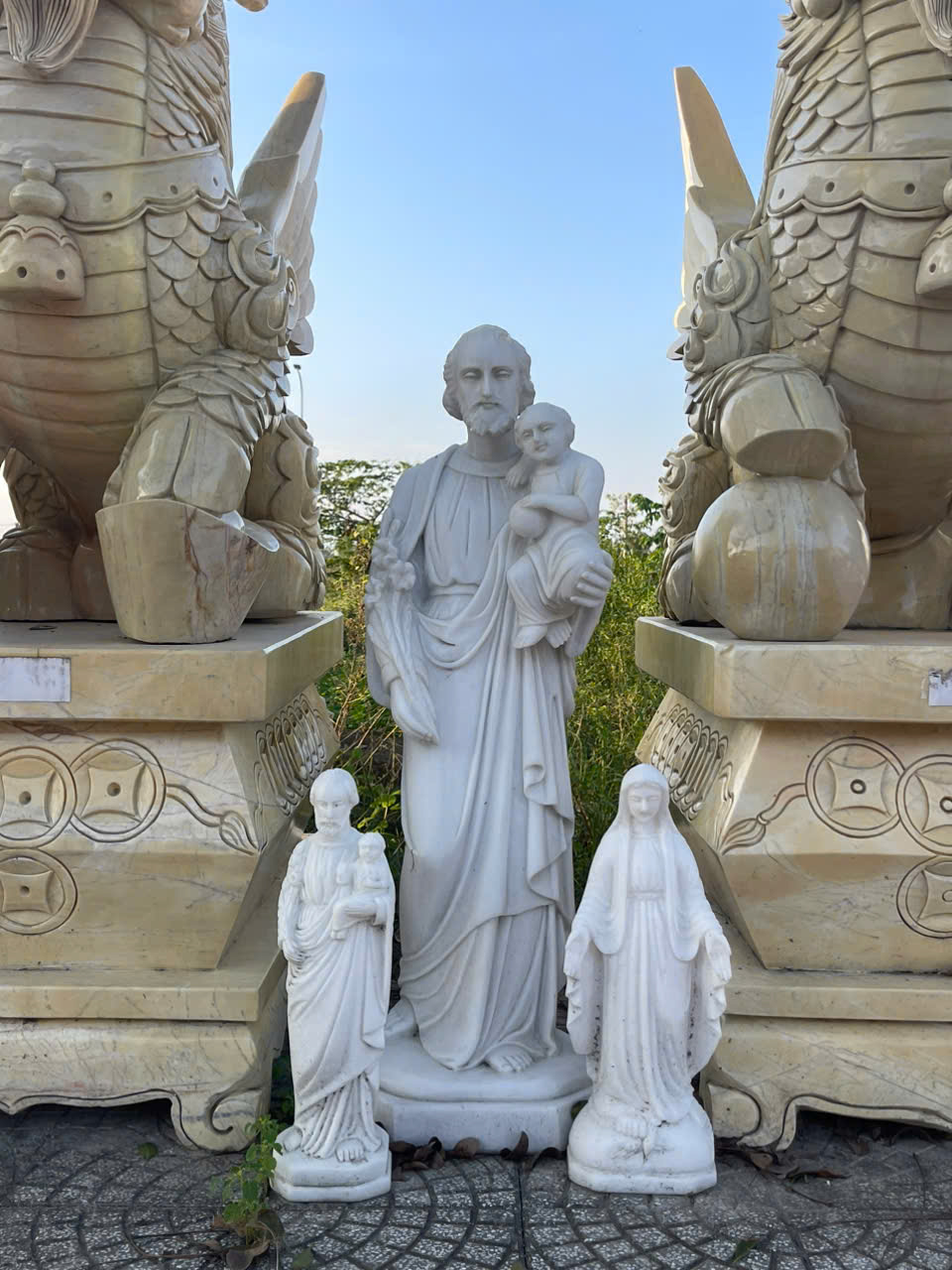 Tượng chúa giê - su đá trắng nguyên khối là vị thành bảo trợ gia đình, công việc và nhưng người lao động