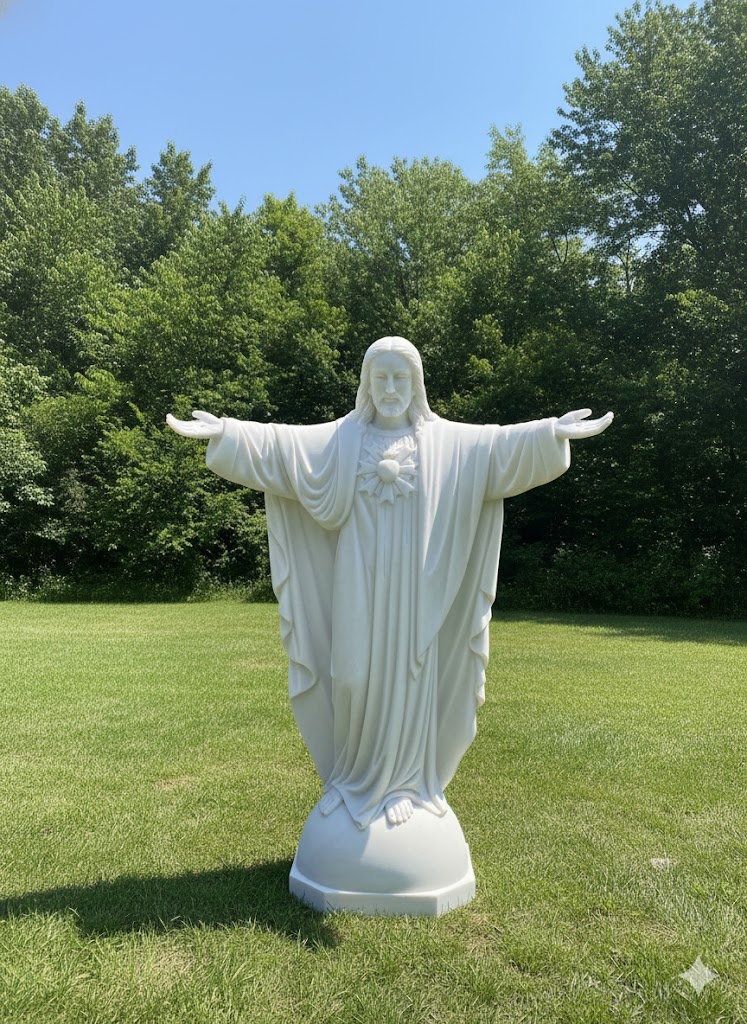 Tượng này thường được làm bằng đá trắng, thể hiện hình ảnh Chúa Giêsu dang rộng hai tay, biểu trưng cho lòng thương xót, tình yêu và sự bao dung của Ngài đối với nhân loại.
