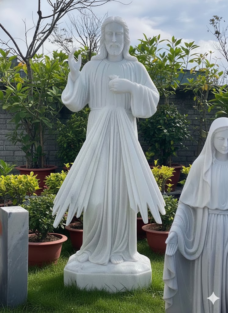 Tượng Chúa Giêsu Lòng Thương Xót đá trắng cao 2m2 T3626