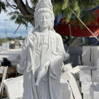 +Mang lại bình an và may mắn: Thờ tượng Phật Bà Quan Âm bằng đá trắng giúp gia đạo bình an, tránh được tà ma, xua tan hung khí và mang lại may mắn, tài lộc, sức khỏe.