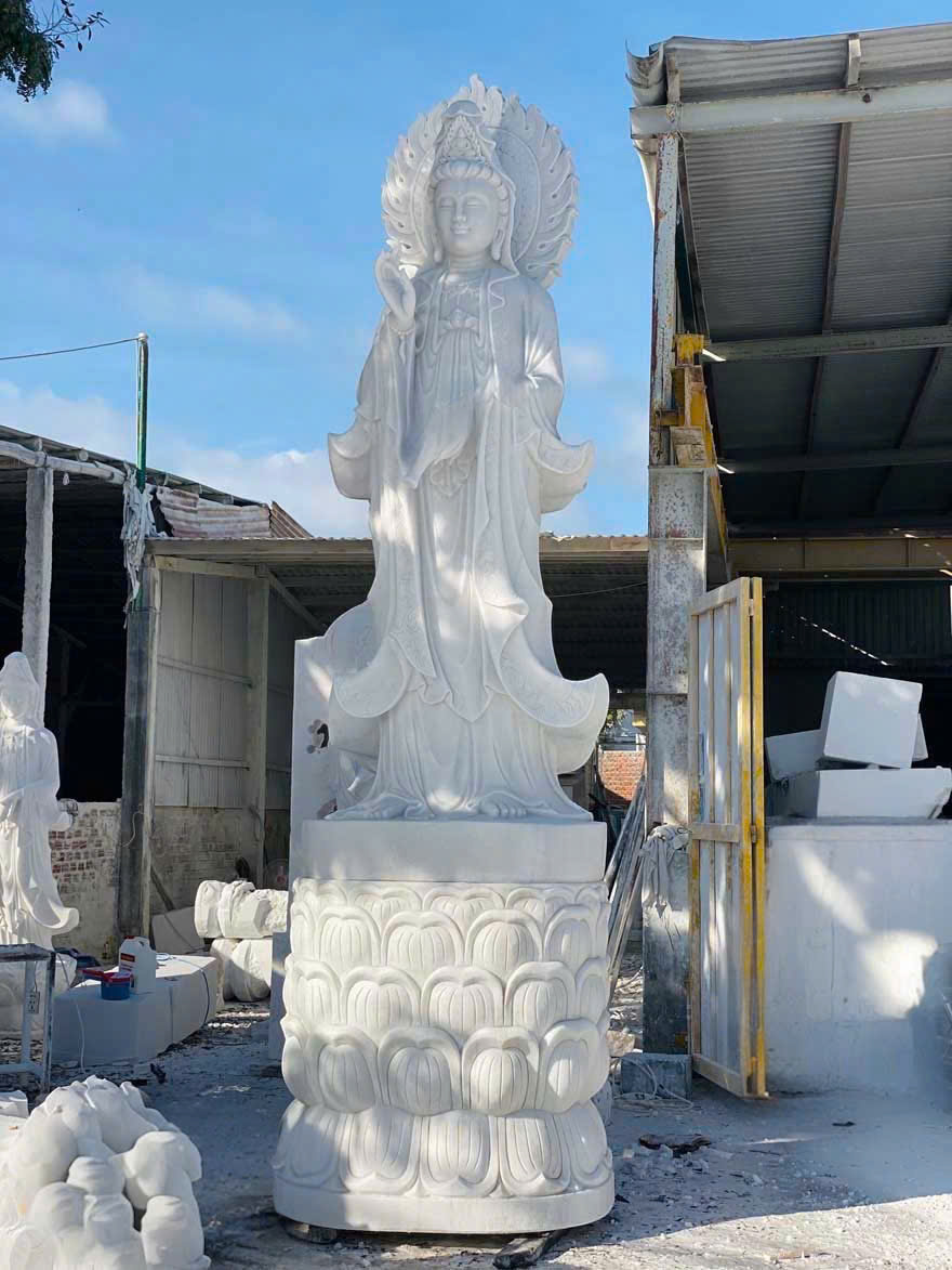 Tượng có dáng đứng trên đài sen đá nguyên khối – biểu tượng cho sự thanh tịnh T3669 cao 4m1