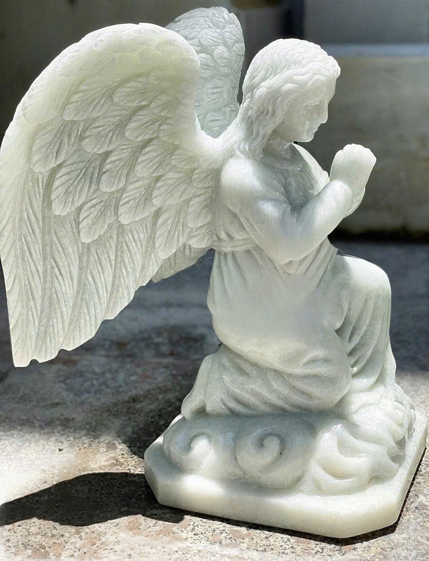 Tượng đá trắng thiên thần quỳ gối này thể hiện sự khiêm nhường tuyệt đối, sự tôn thờ và đức tin mãnh liệt vào một đấng tối cao và là một điều gì đó thiêng liêng.