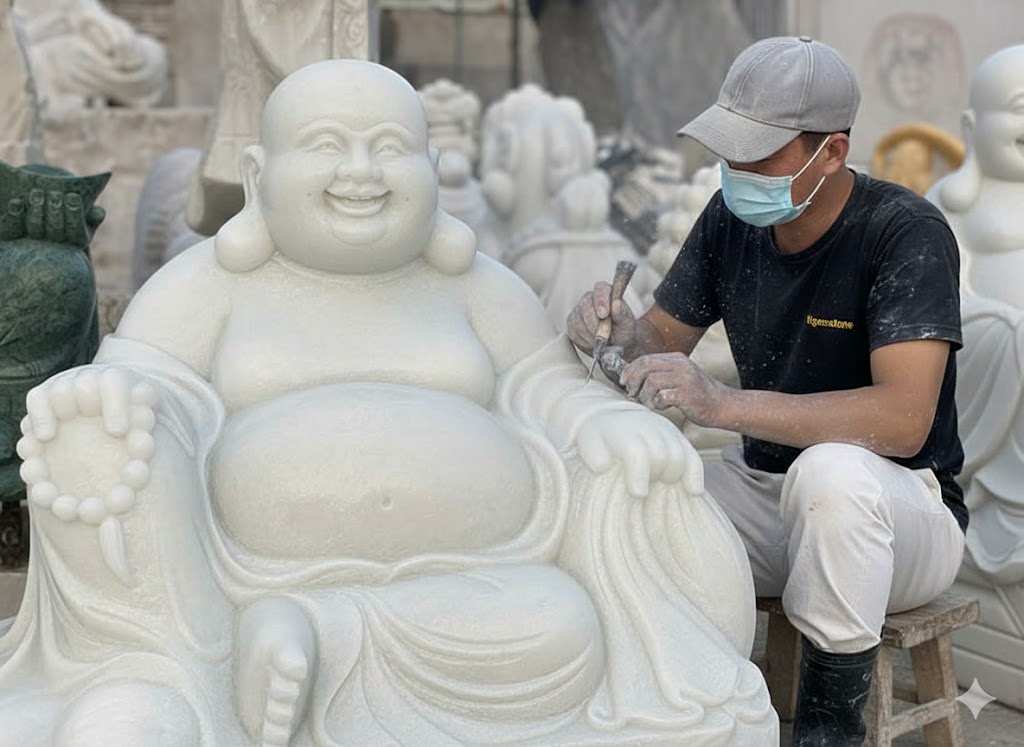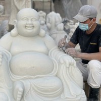 Tượng di lặc đá trắng nguyên khối may mắn vui vẻ hoan hỉ bình an