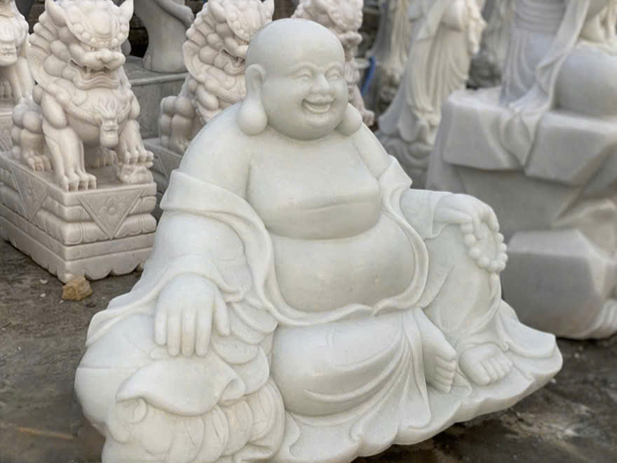 Tượng di lặc đá trắng nguyên khối cao cấp cao 80cm - ngang 1m1 T3650