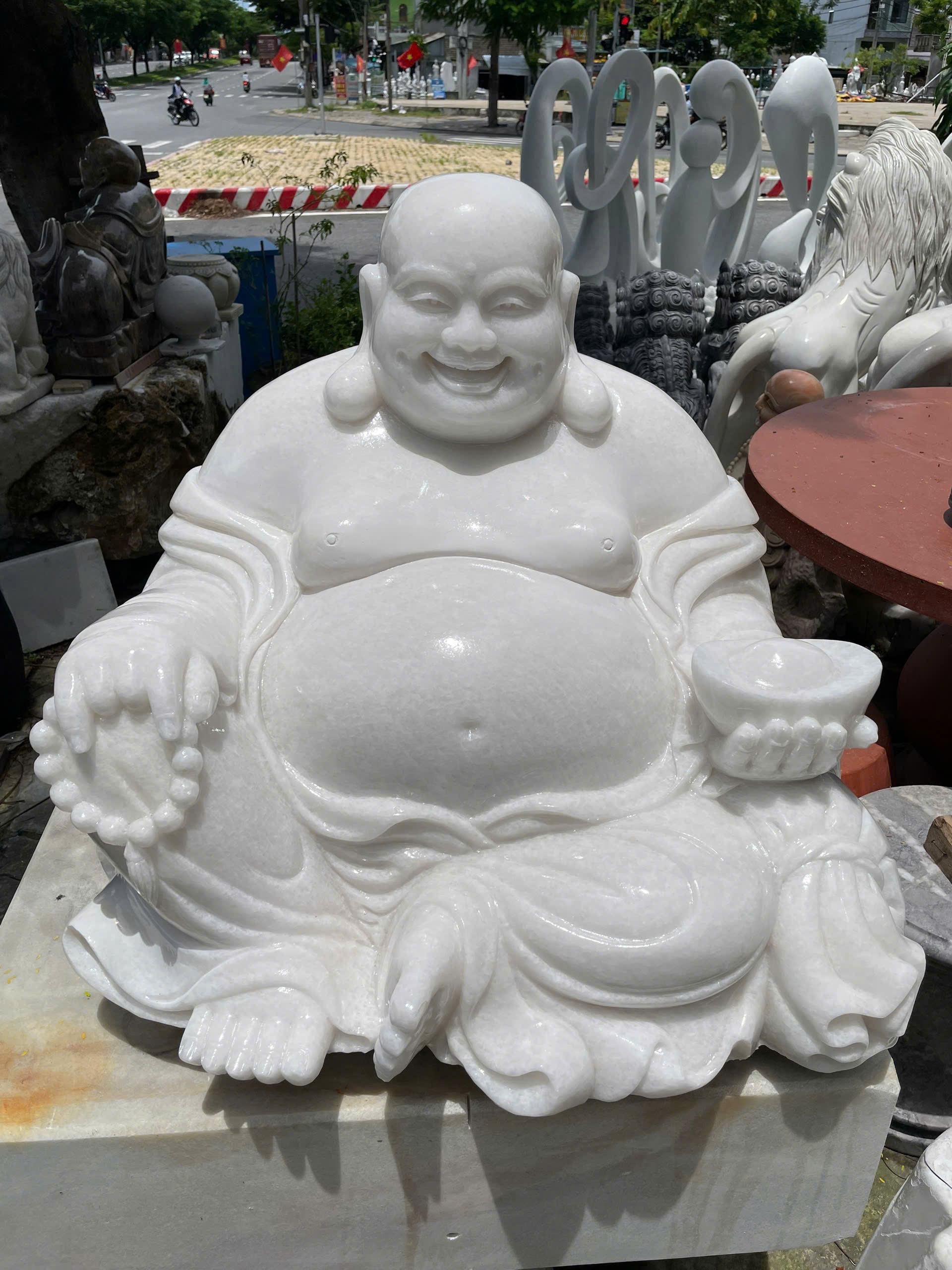 • Tượng di lặc đá trắng nguyên khối dài 70cm - cao 60cm T3545