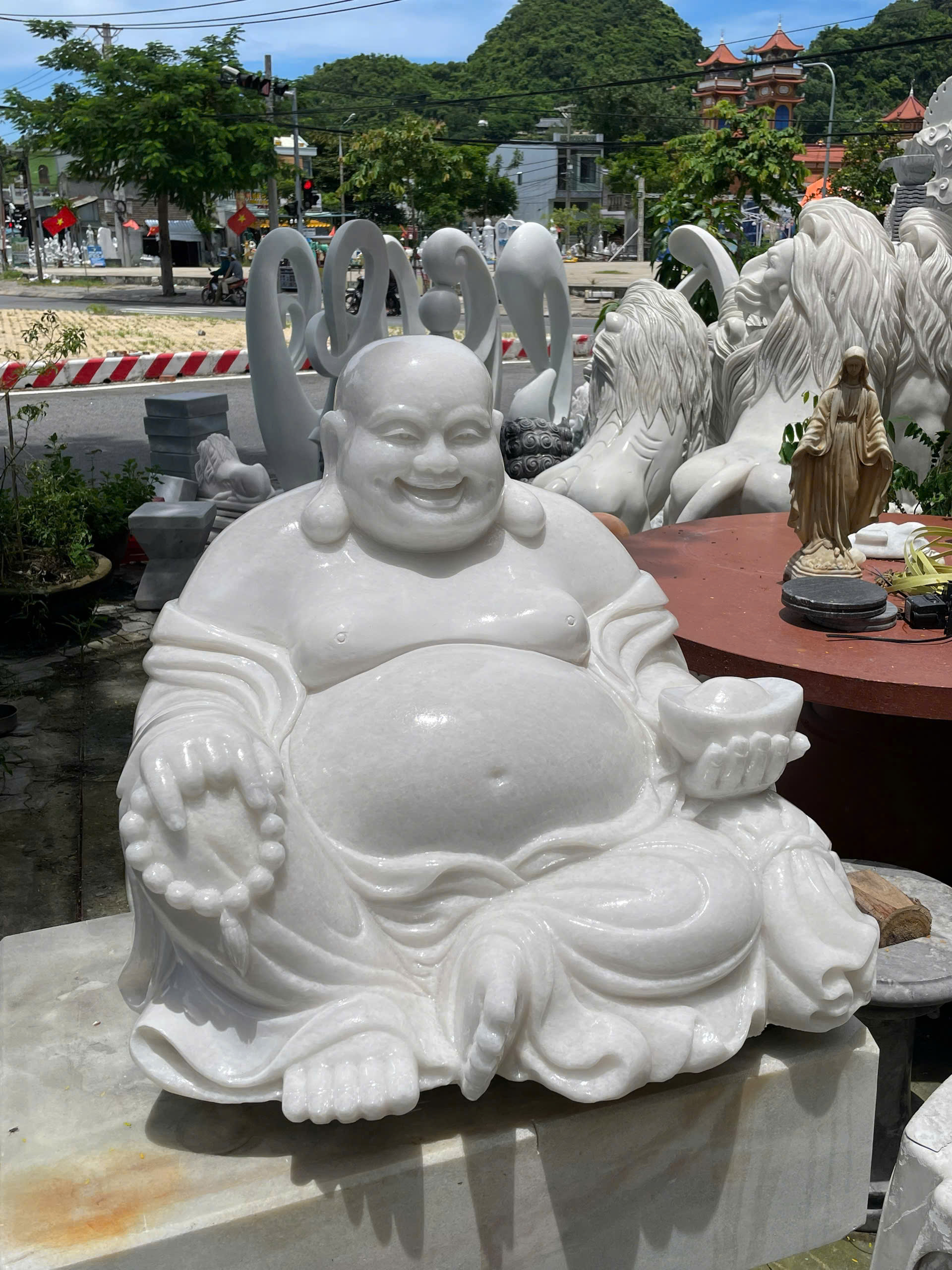 0 đánh giá cho Tượng di lặc đá trắng nguyên khối dài 70cm - cao 60cm T3545
