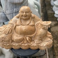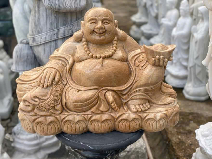 Tượng di lặc đá vân gỗ nguyên khối cao 40cm T3647