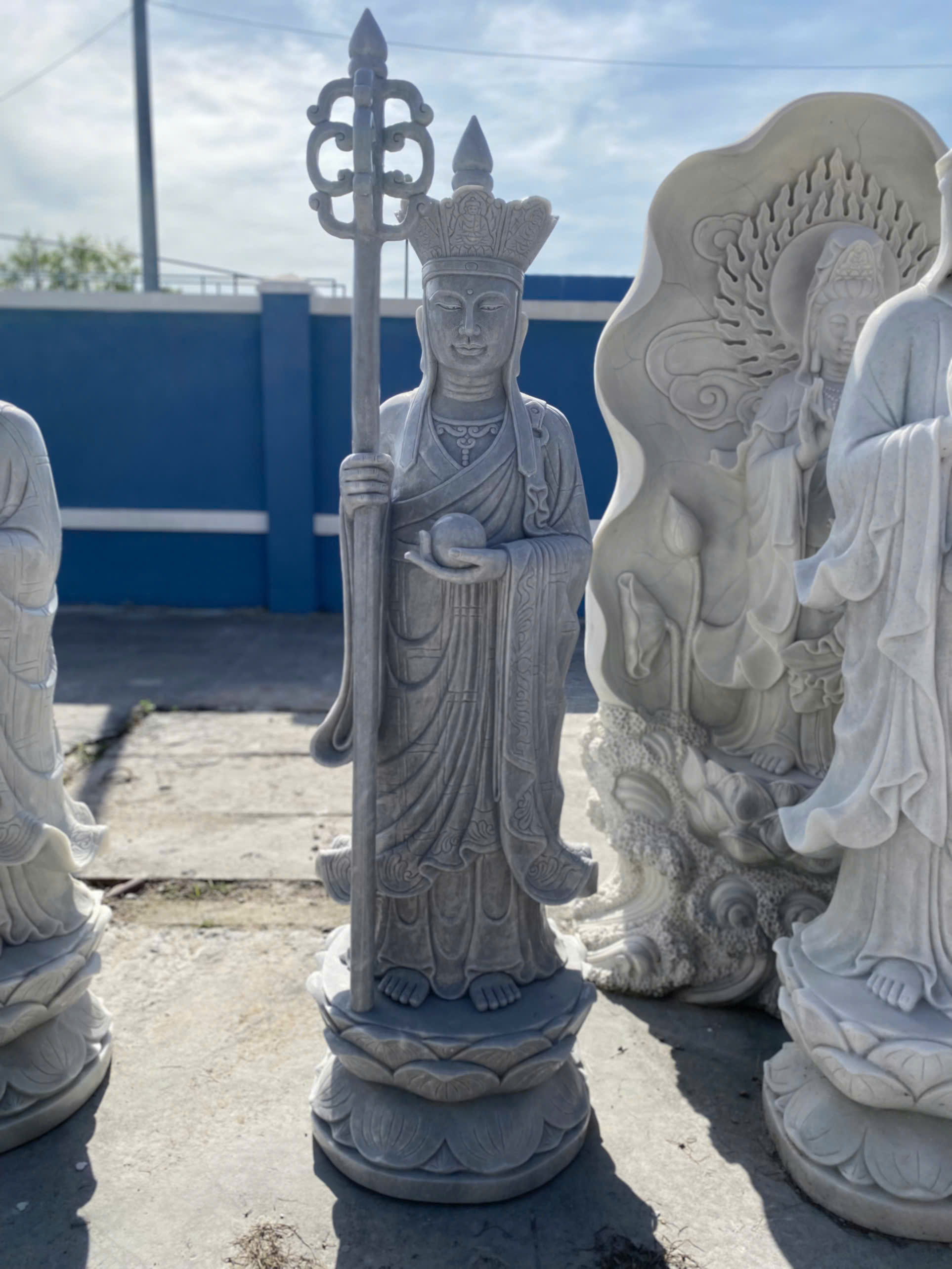• Tượng phật địa tạng vương bồ tát đá trắng nguyên khối cao 1.7m -ngang 50cm - dài 45cm T3598