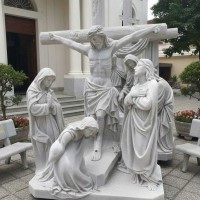 Tượng được tạc bằng đá trắng nguyê khối với đường nét mềm mại, tinh xảo. Hình ảnh Chúa Giêsu dang tay trên thập giá, đầu cúi xuống, gương mặt thể hiện sự đau đớn nhưng vẫn toát lên vẻ hiền từ và bao dung.