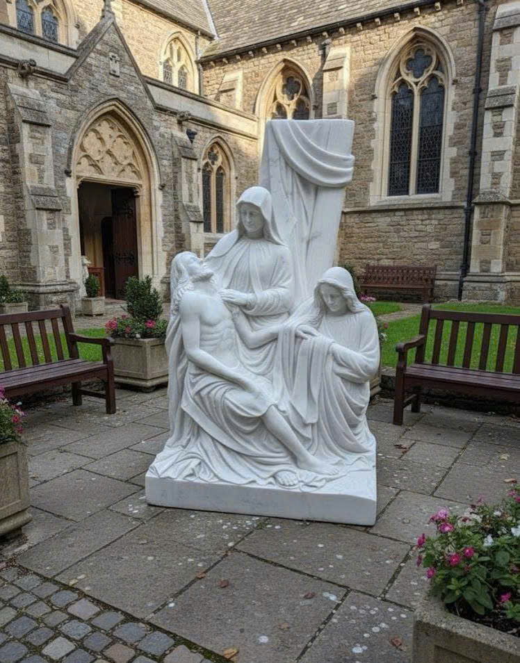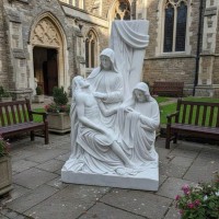 Tượng điêu khắc Đức Mẹ sầu bi, ôm thân xác Chúa Giêsu xuống khỏi thập giá bằng đá trắng