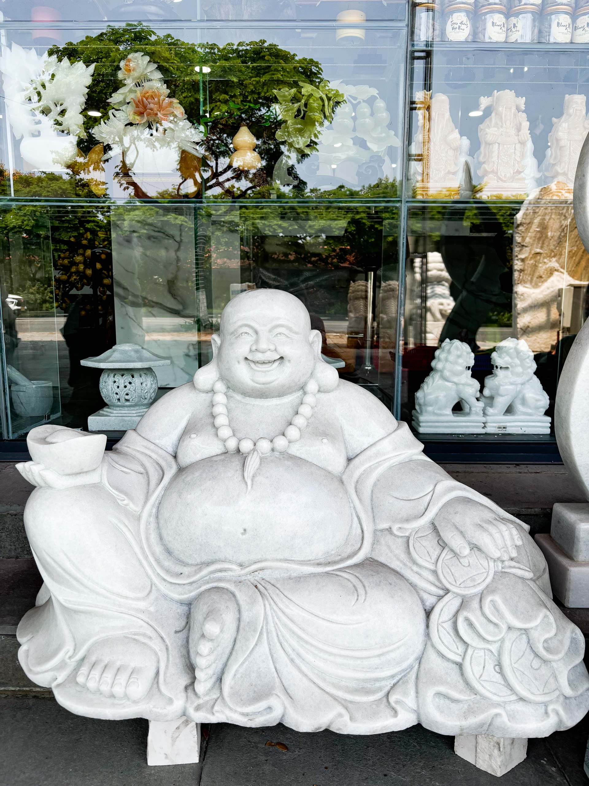 Tượng điêu khắc phật di lặc đá trắng nguyên khối cao 65cm ngang 1M : là một biểu tượng của sự an lạc và bình yên tâm linh. Việc trưng bày tượng trong nhà sẽ giúp gia chủ có thêm niềm tin và động lực để vượt qua khó khăn trong cuộc sống.