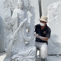 0 đánh giá cho Tượng phật quan âm đứng đá trắng nguyên khối Cao 1.5M ngang 60Cm dài 40Cm T3581