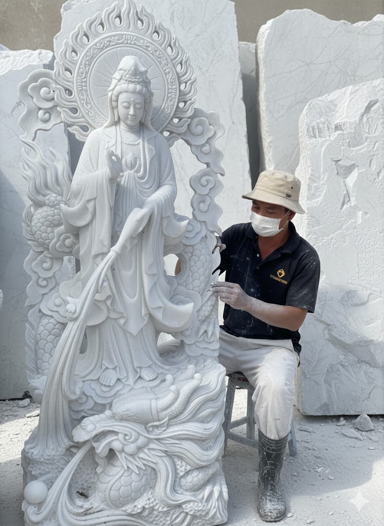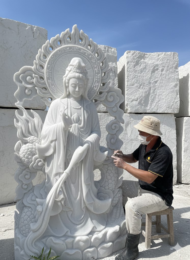 Tượng phật quan âm dáng ngồi đá trắng nguyên khối: Biểu tượng của lòng từ bi và sự bình an