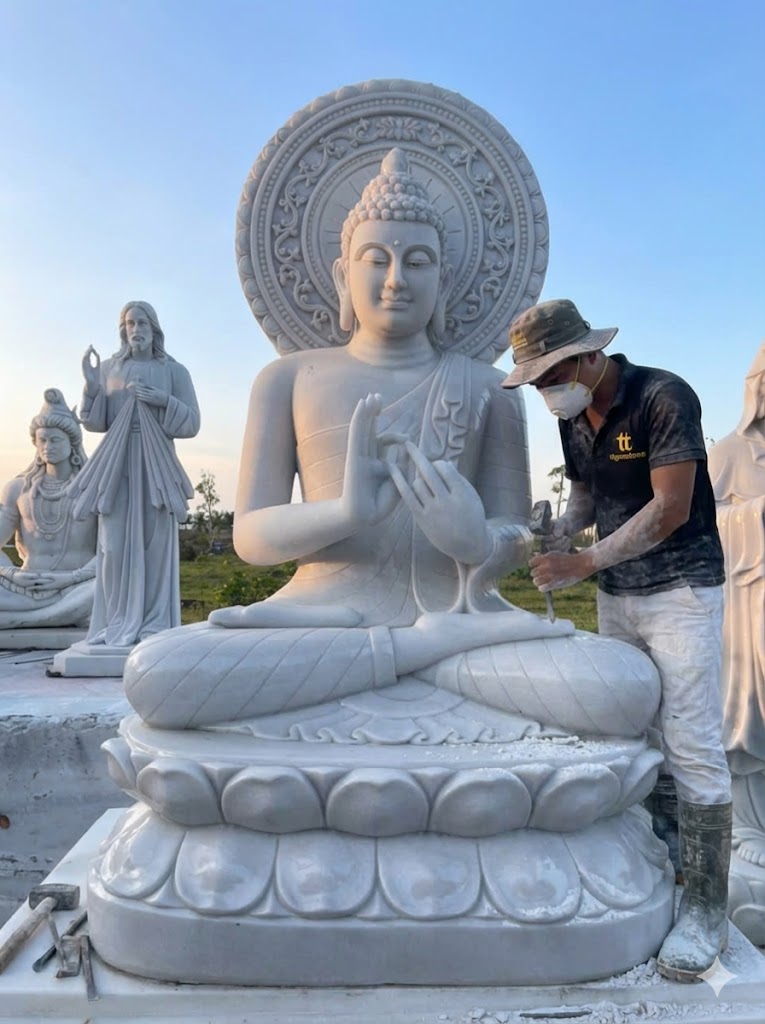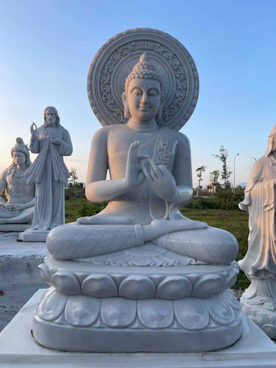 + Tượng thích ca đá trắng xanh mang lại sự bình an may mắn cho gia chủ