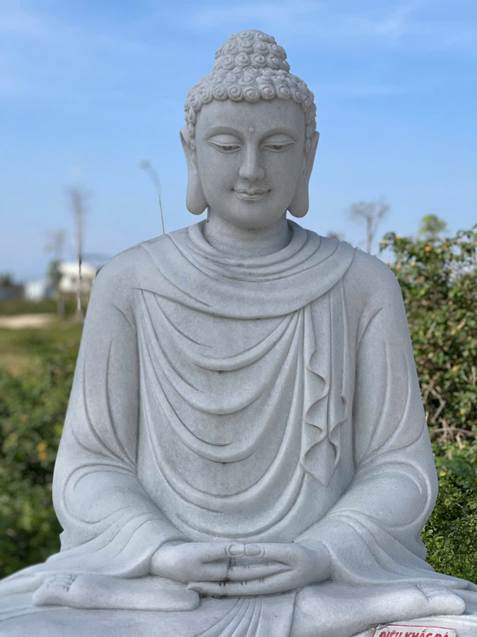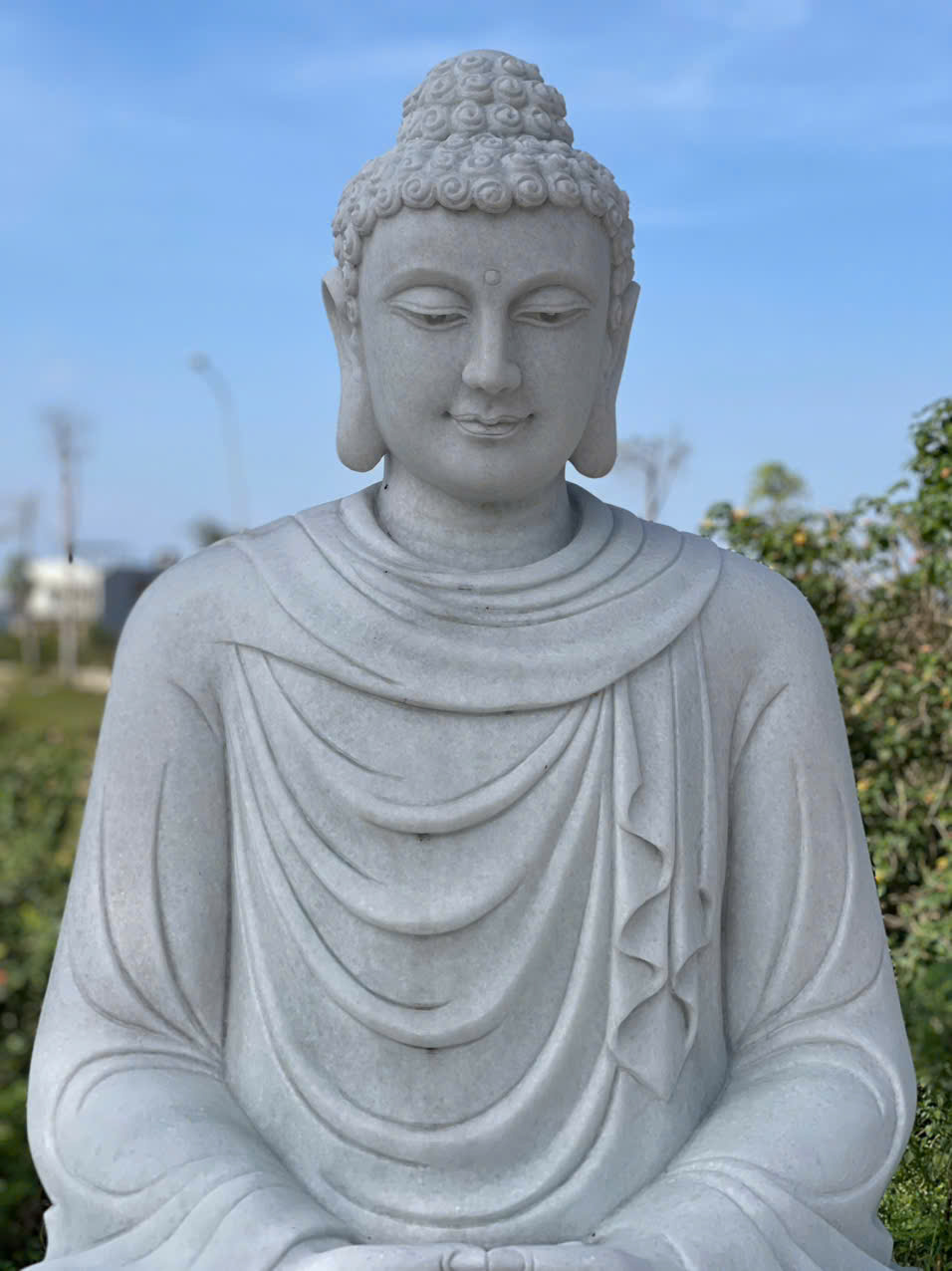 Tượng thích ca đá trắng nguyên khối mang lại sự bình an may mắn cho gia chủ