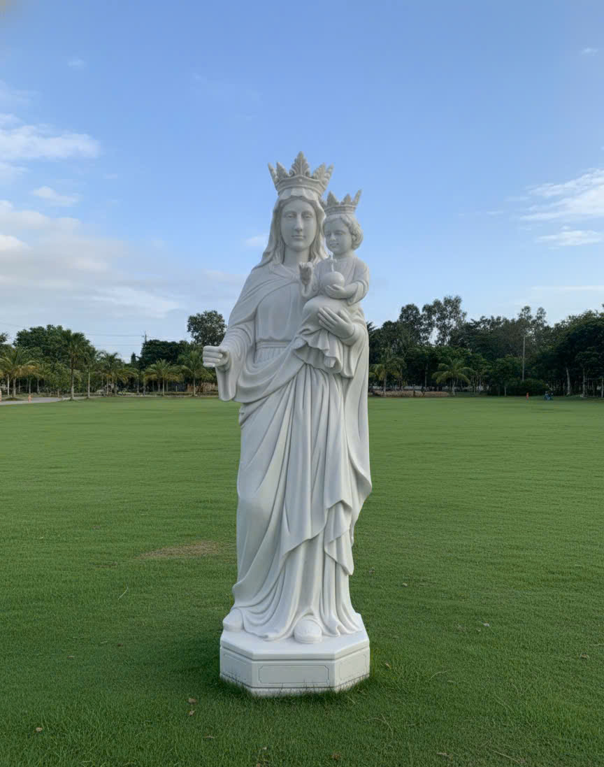 0 đánh giá cho Tượng Đức Mẹ Hằng Cứu Giúp bồng chúa cao 2.5m đá trắng nguyên khối T3745