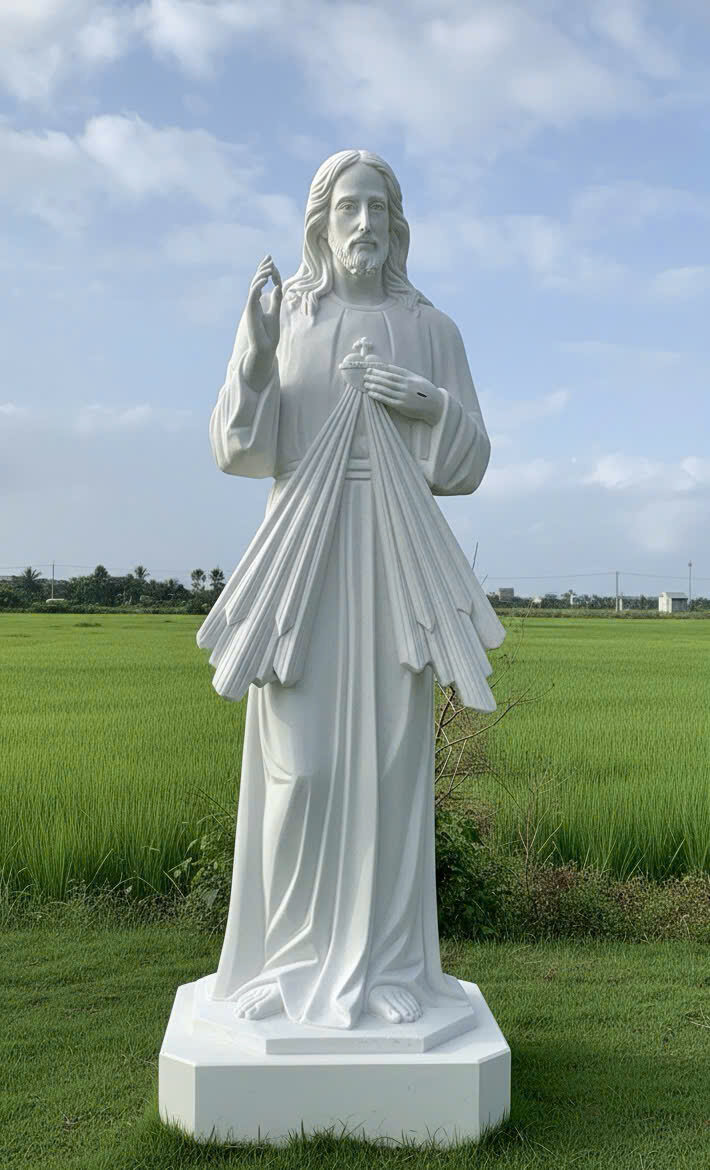 • Tượng lòng chúa thương xót cao 1m2 đá trắng nguyên khối T3741