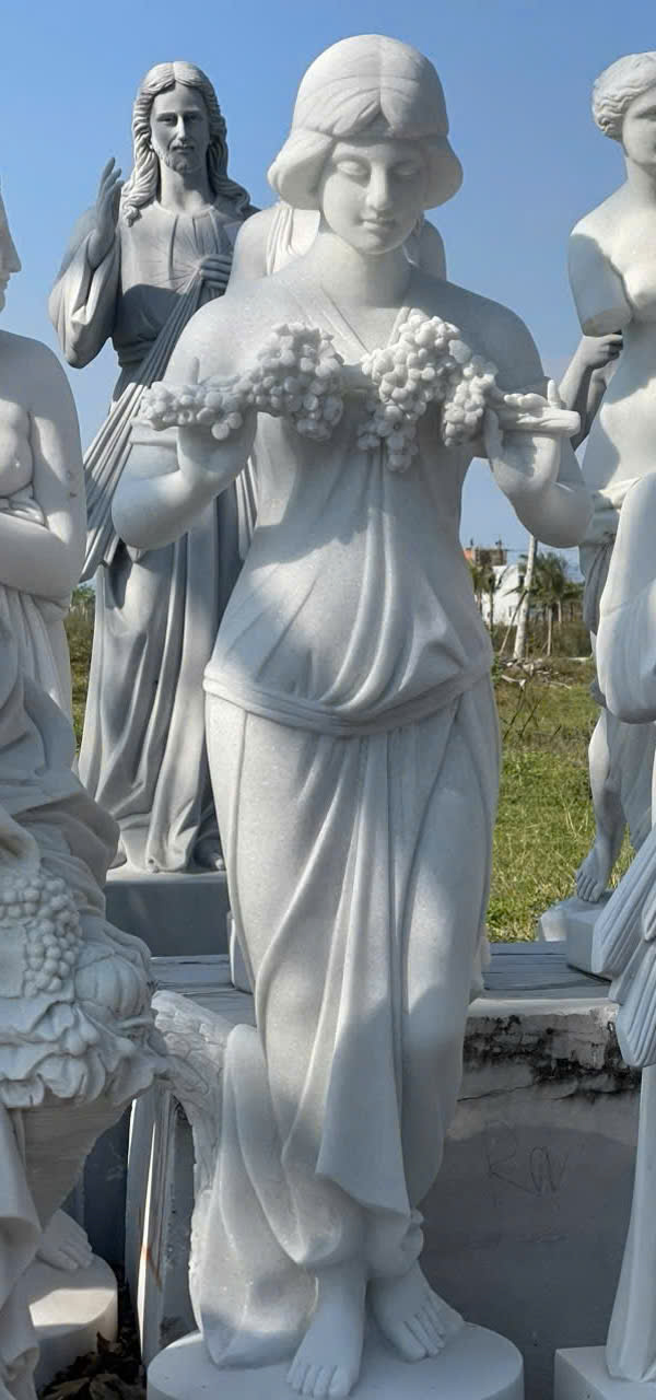 + Người phụ nữ khoác áo dài nhẹ, tay nâng chùm nho hoặc hoa quả tượng trưng cho sự sung túc, no đủ và mùa màng bội thu