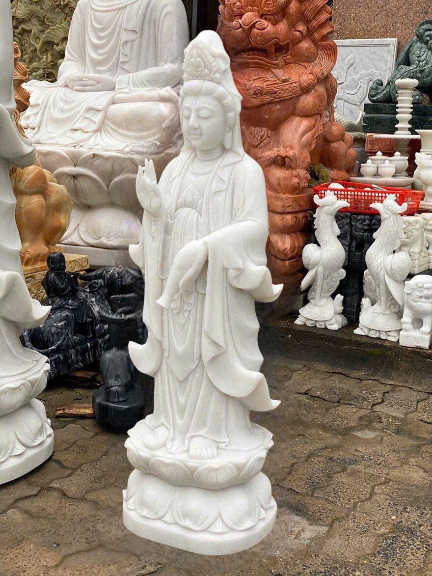 • Tượng phật bà quan âm đá trắng nguyên khối cao 1.1m T3698