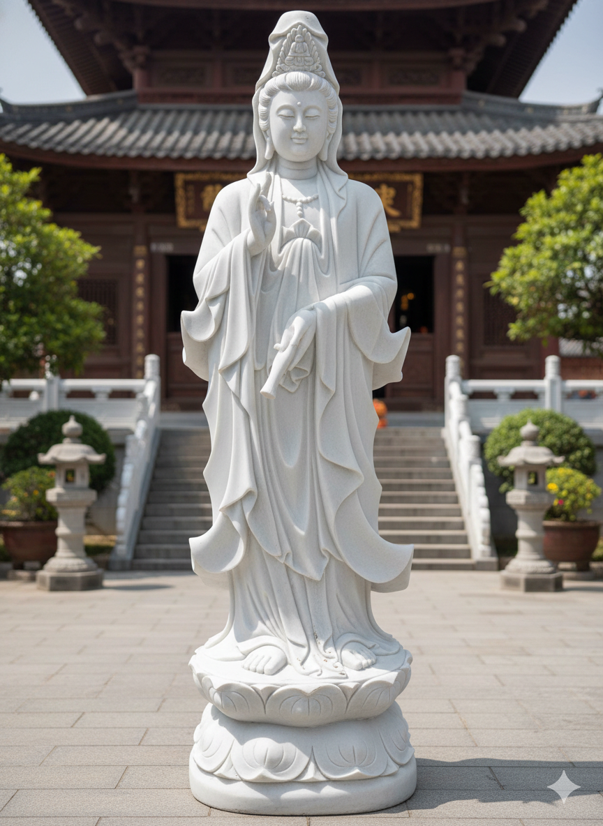 + Mang lại điềm lành: Tượng Quan Âm trong phong thủy mang đến điềm lành, hướng thiện và giải trừ tà khí.