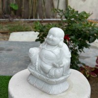 Tượng phật di lặc ngồi trên đài sen có nụ cười tươi rạng rỡ, khuôn mặt phúc hậu và đầy đặn, toát lên vẻ an vui, tự tại.