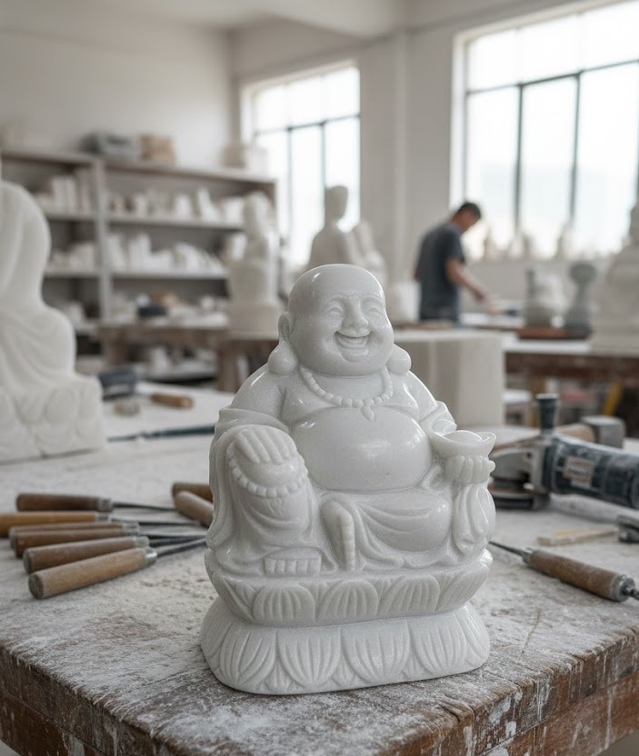 +Phật Di Lặc là biểu tượng của niềm vui, hạnh phúc.Thỏi vàng trong tay Ngài tượng trưng cho tài lộc, của cải và công danh thuận lợi, giúp thu hút vận may và thịnh vượng cho gia chủ.