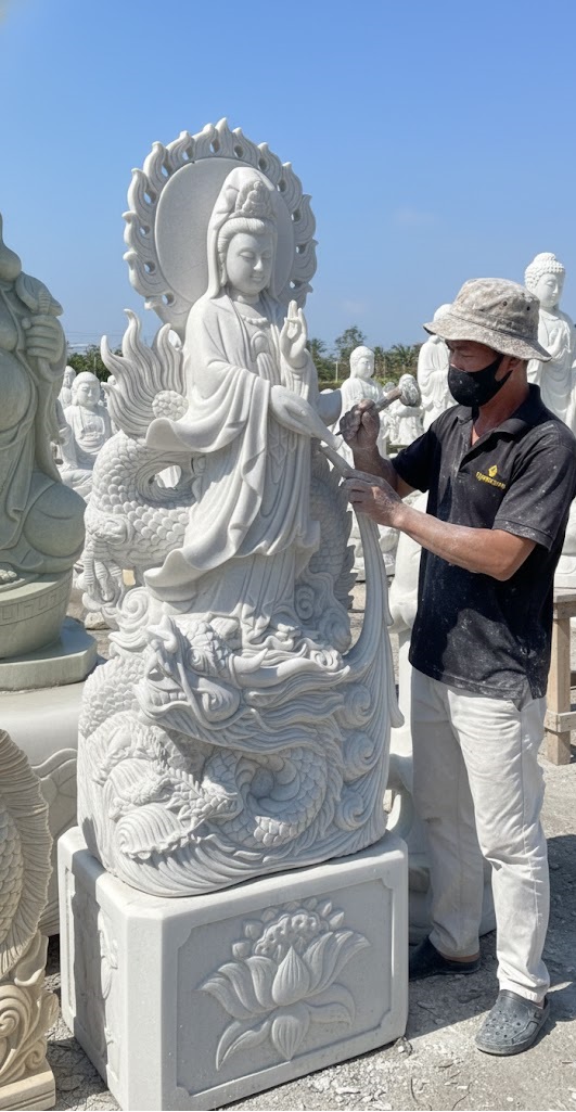 Tượng phật quan âm cưỡi rồng đá trắng nguyên khối: Sự nhắc nhở, răng dạy cho người sống hướng thiện