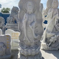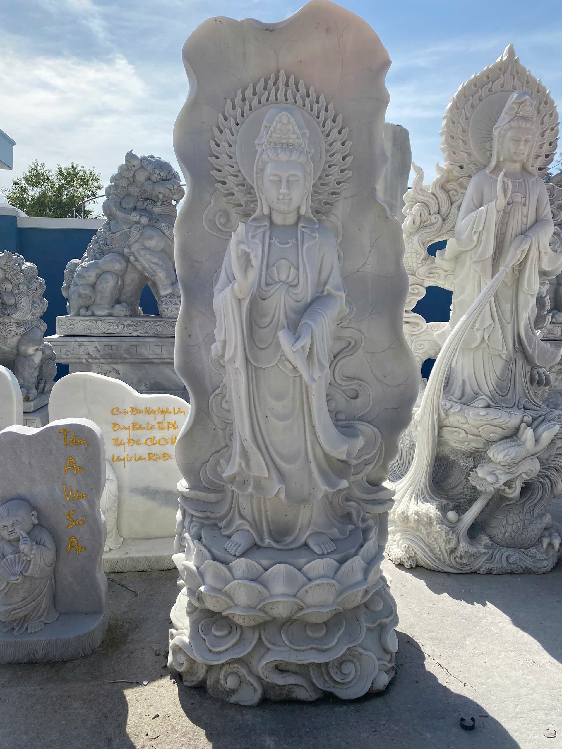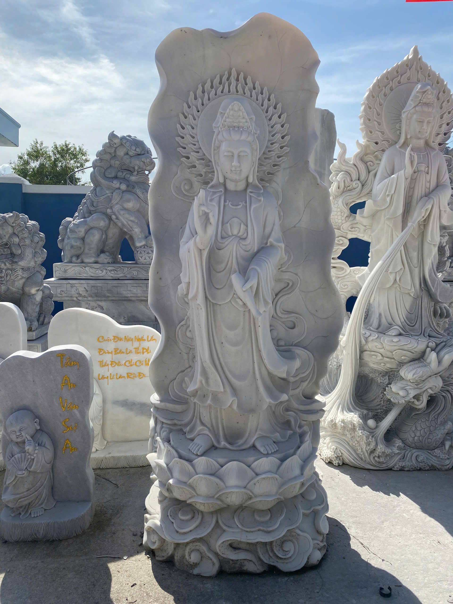 • Tượng phật quan âm đá trắng nguyên khối Cao 2.2m-80cm-50cm T3595