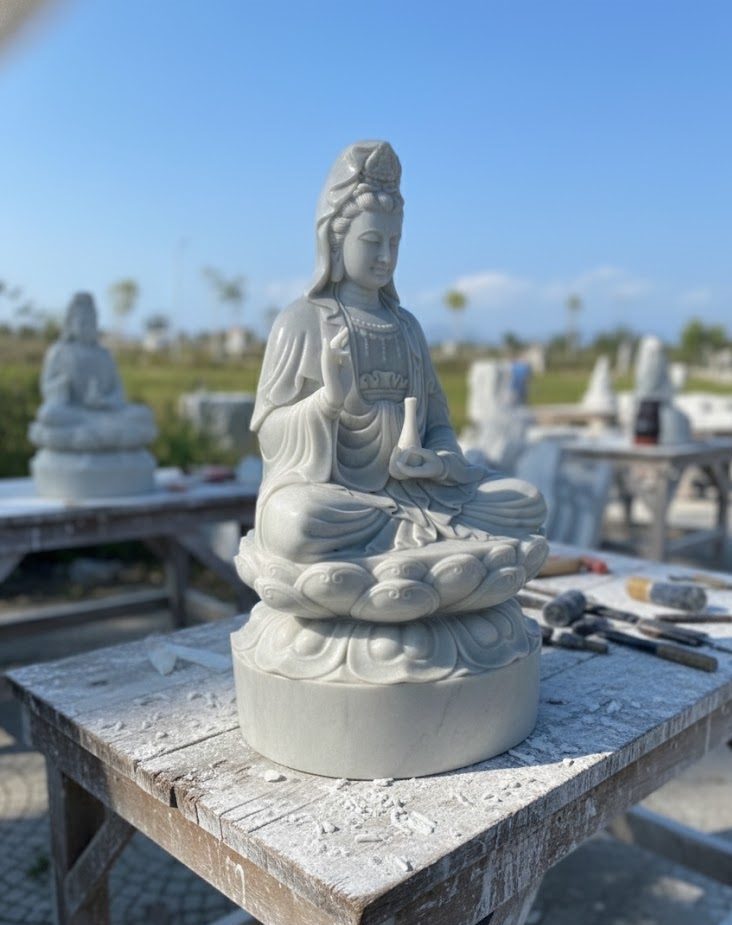 Tượng phật quan âm dáng ngồi đá trắng nguyên khố: Biểu tượng của lòng từ bi và sự bình an