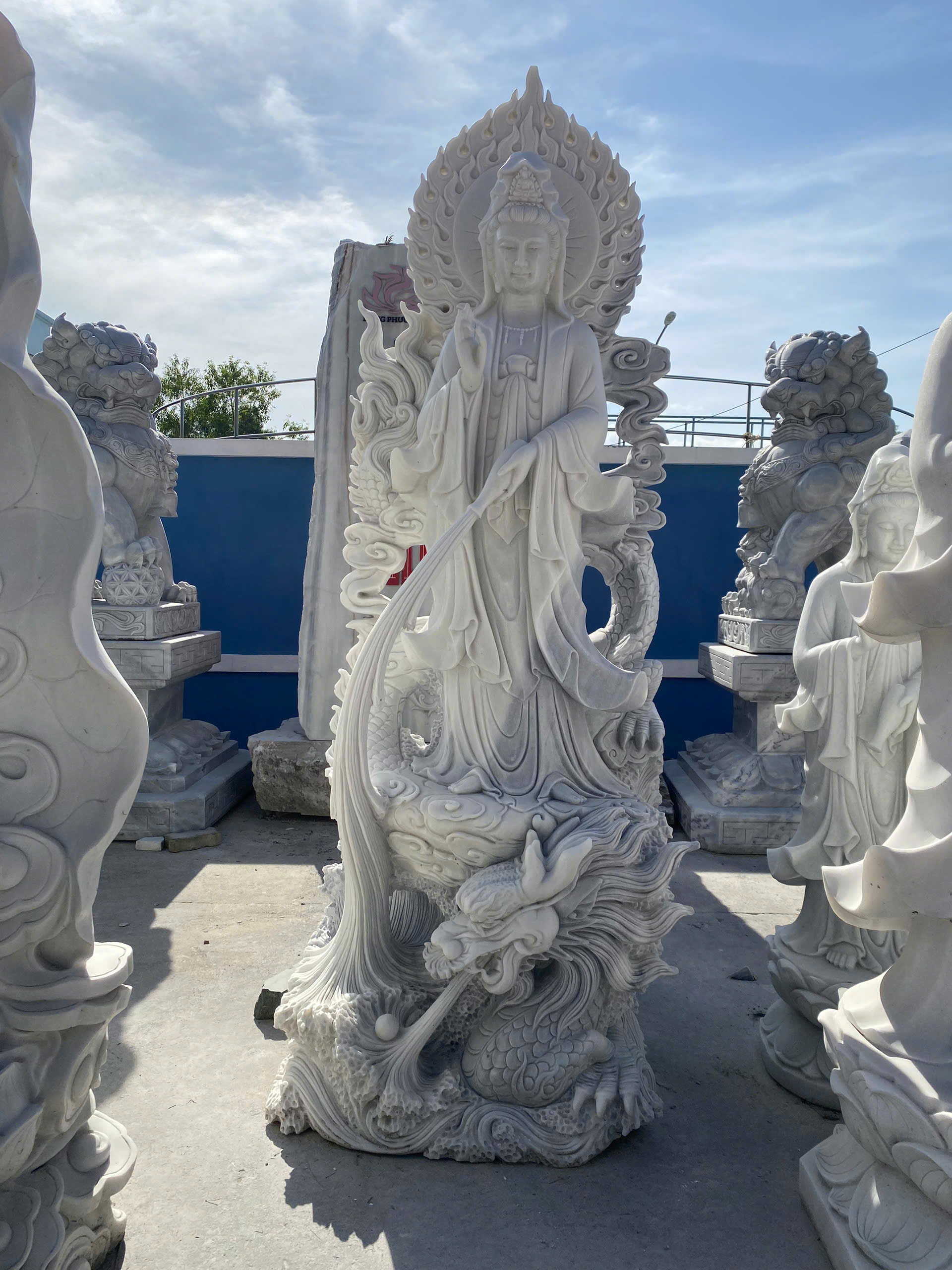 0 đánh giá cho Tượng phật Quan Thế Âm Bồ tát cưỡi rồng đá trắng nguyên khối cao 2.5m ngang 90cm dài 65cm T3596