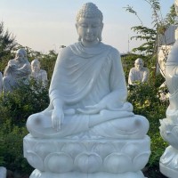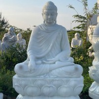 Tượng phật thích ca đá trắng nguyên khối biểu tượng sự may mắn bình an cho gia chủ